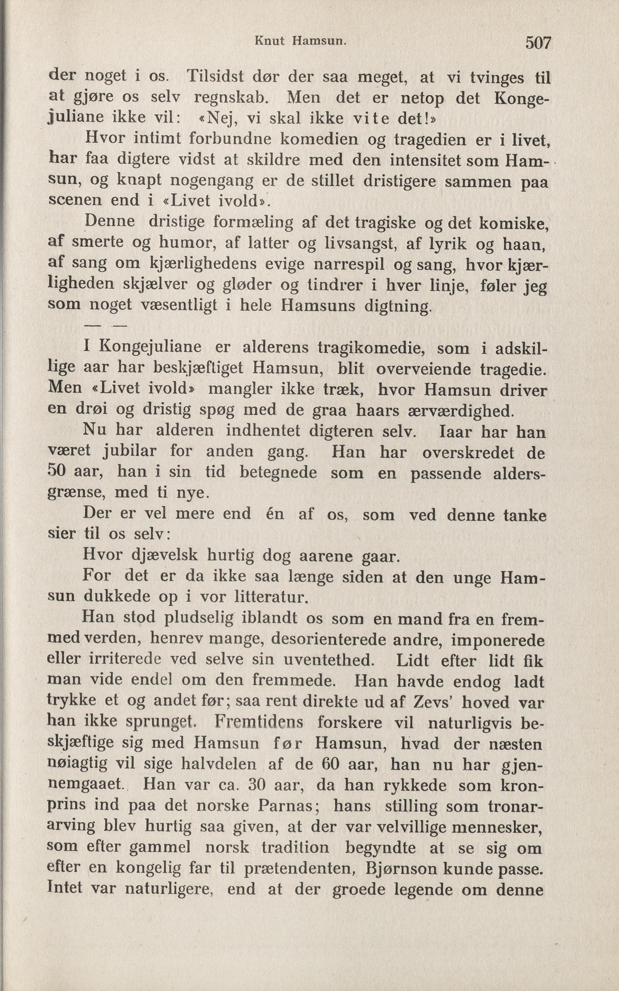 lige aar har beskjæftiget Hamsun, blit overveiende tragedie.