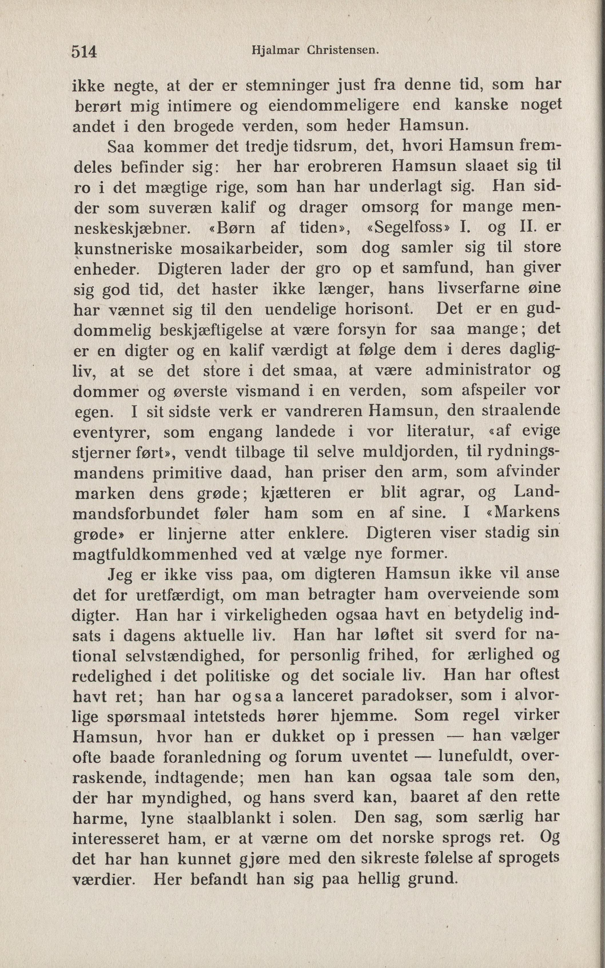 Jeg er ikke viss paa, om digteren Hamsun ikke vil anse