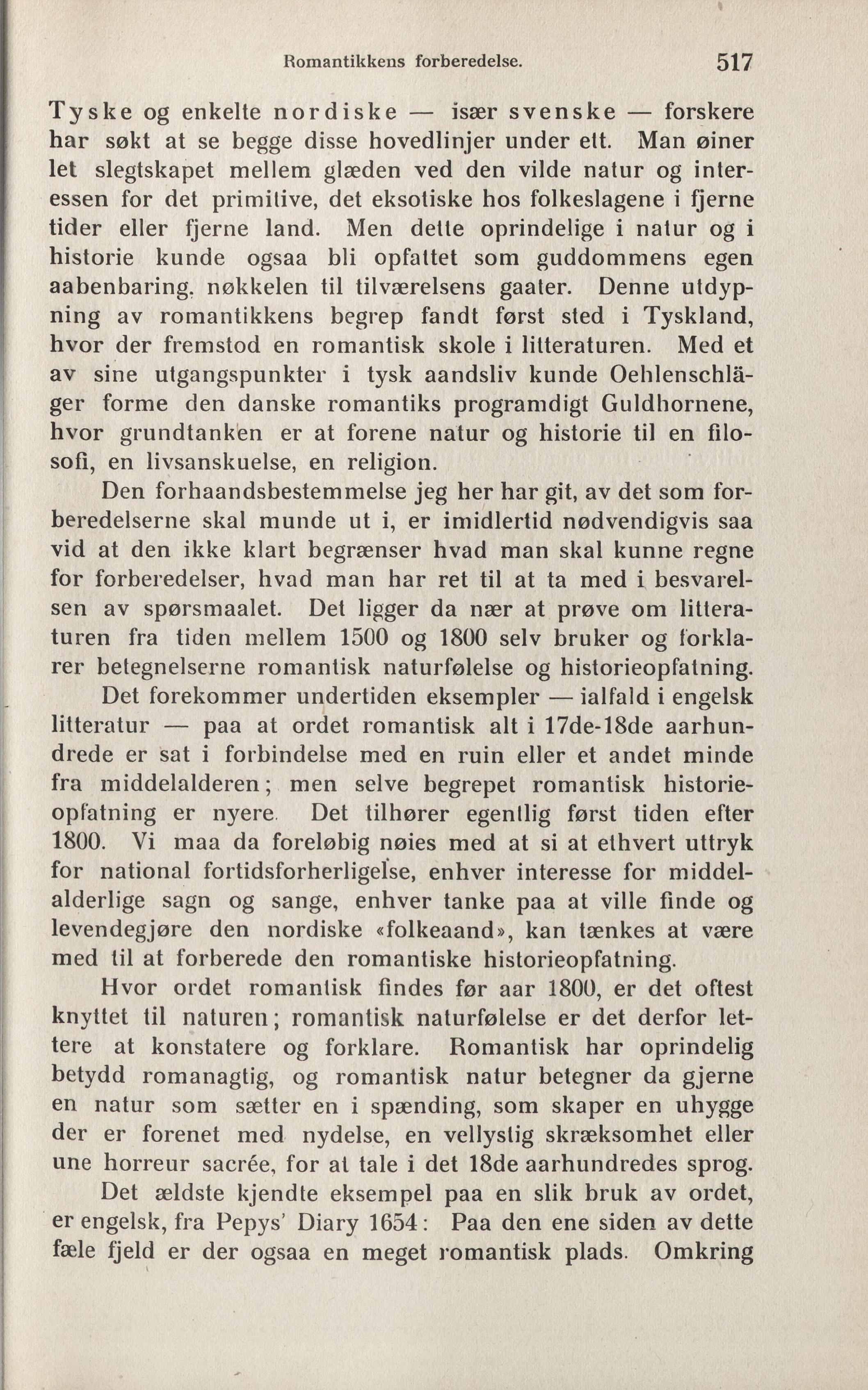 rer betegnelserne romantisk naturfølelse og historieopfatning.