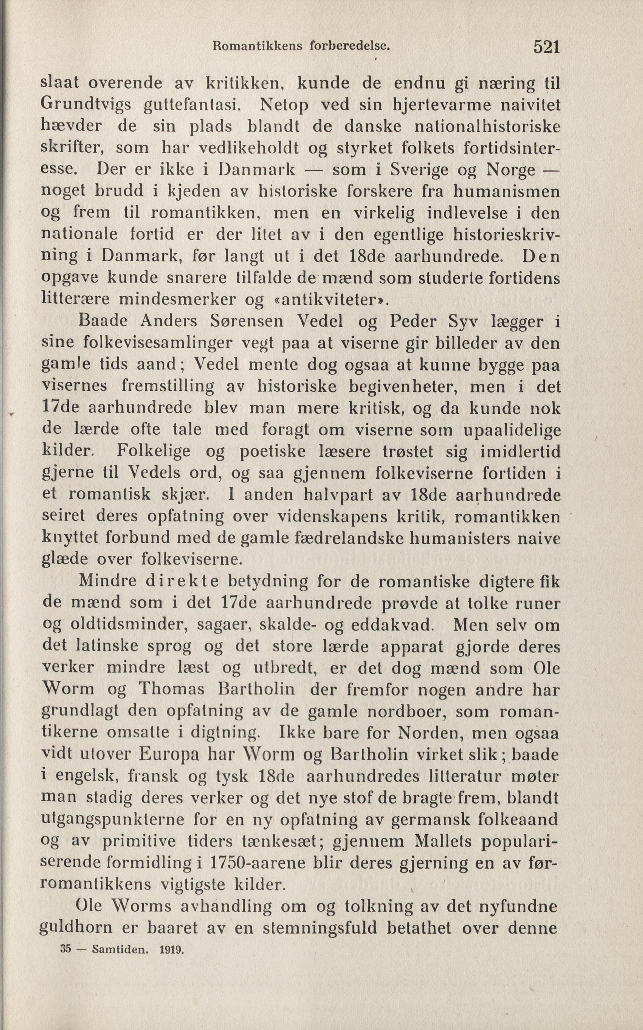 gjerne til Vedels ord, og saa gjennem folkeviserne fortiden i