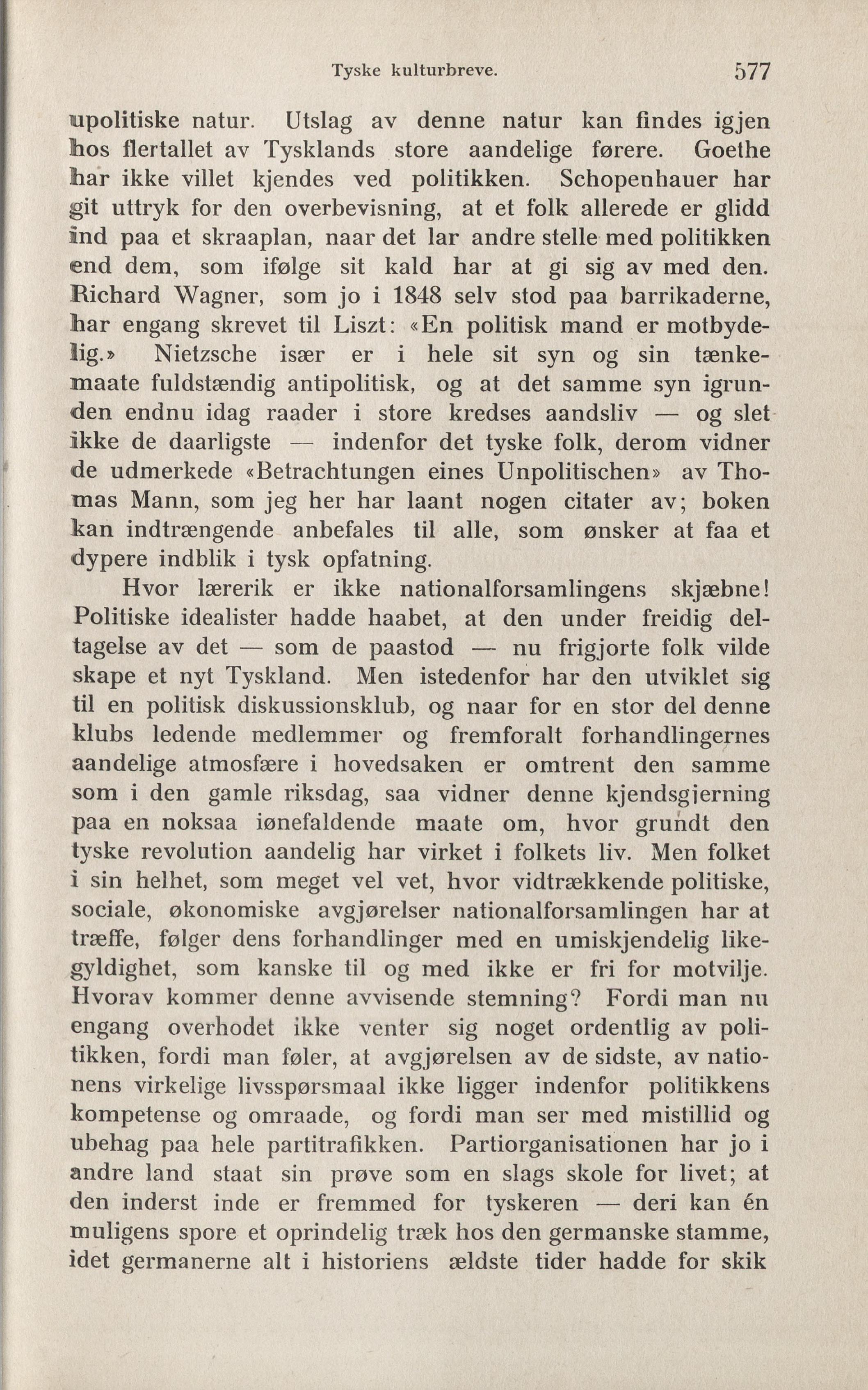 de udmerkede «Betrachtungen eines Unpolitischen» av Tho