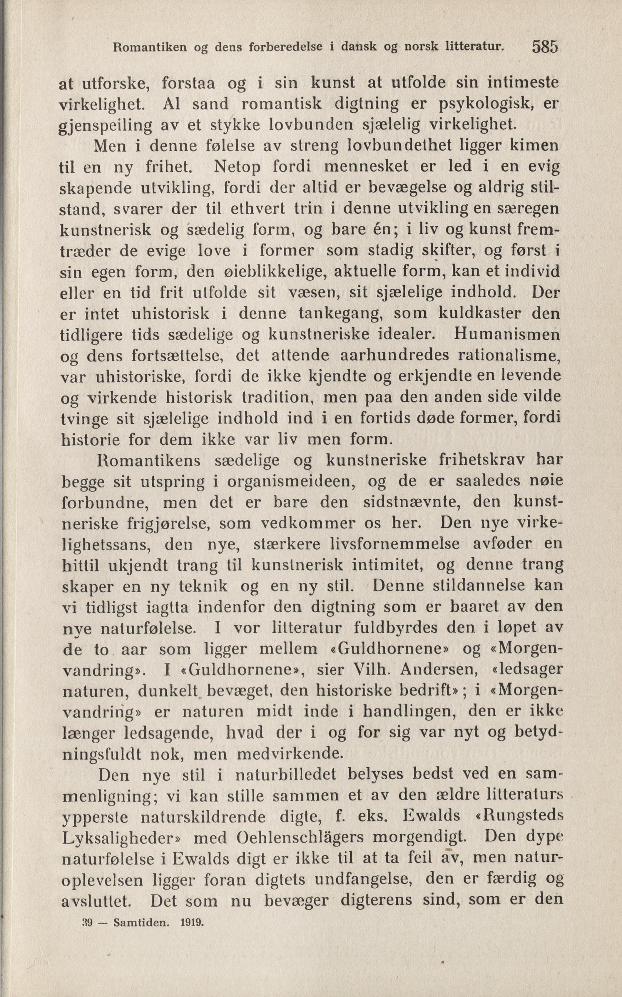 Romantiken og dens förberedelse i dansk og norsk litteratur.