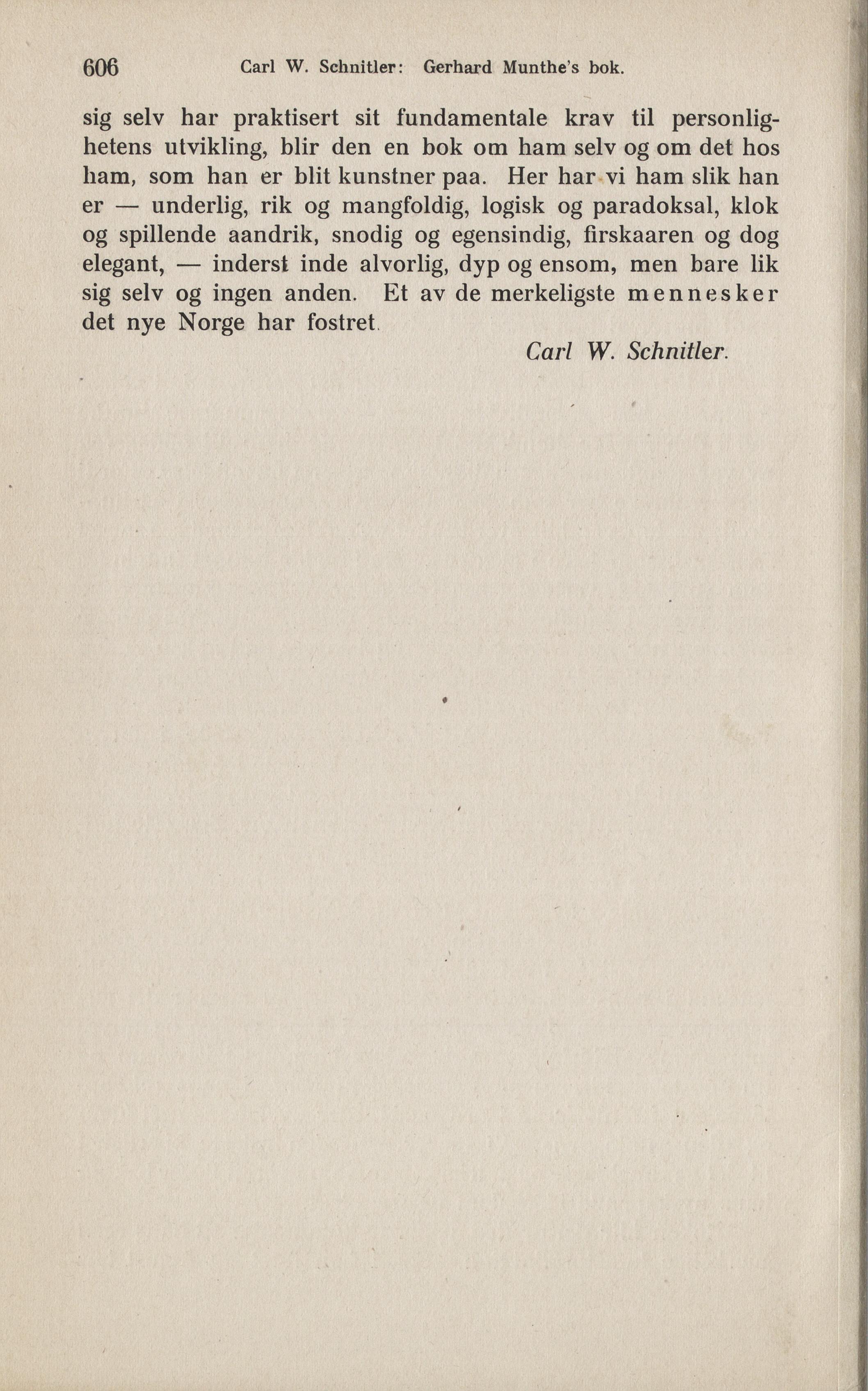 Full resolution (JPEG) - On this page / på denna sida - Carl W. Schnitler: Gerhard Munthes bok. «Minder og Meninger»