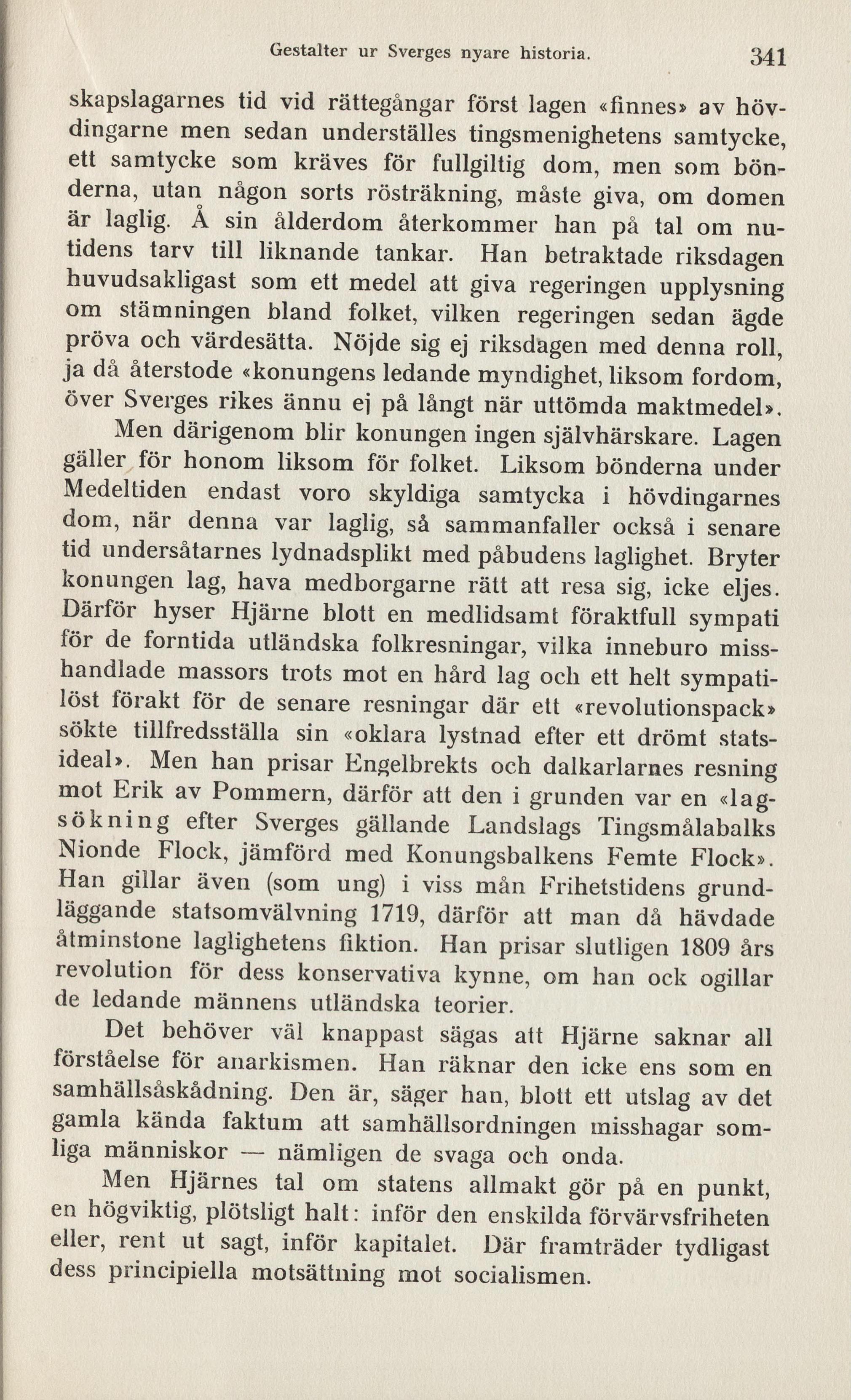 Men Hjärnes tal om statens allmakt gör på en punkt,