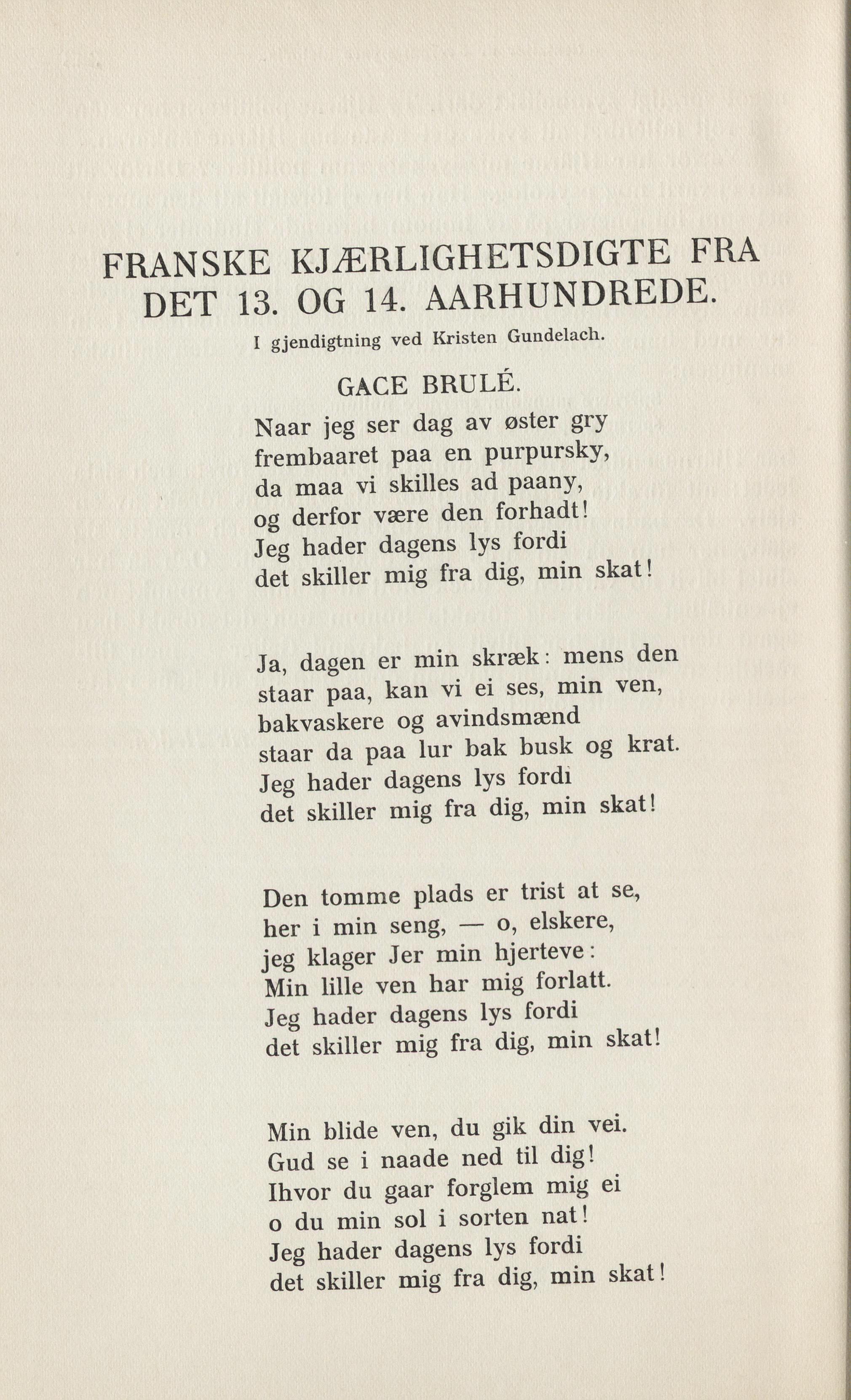 Full resolution (JPEG) - On this page / på denna sida - Kristen Gundelach: Franske kjærlighetsdigte - Gace Brulé