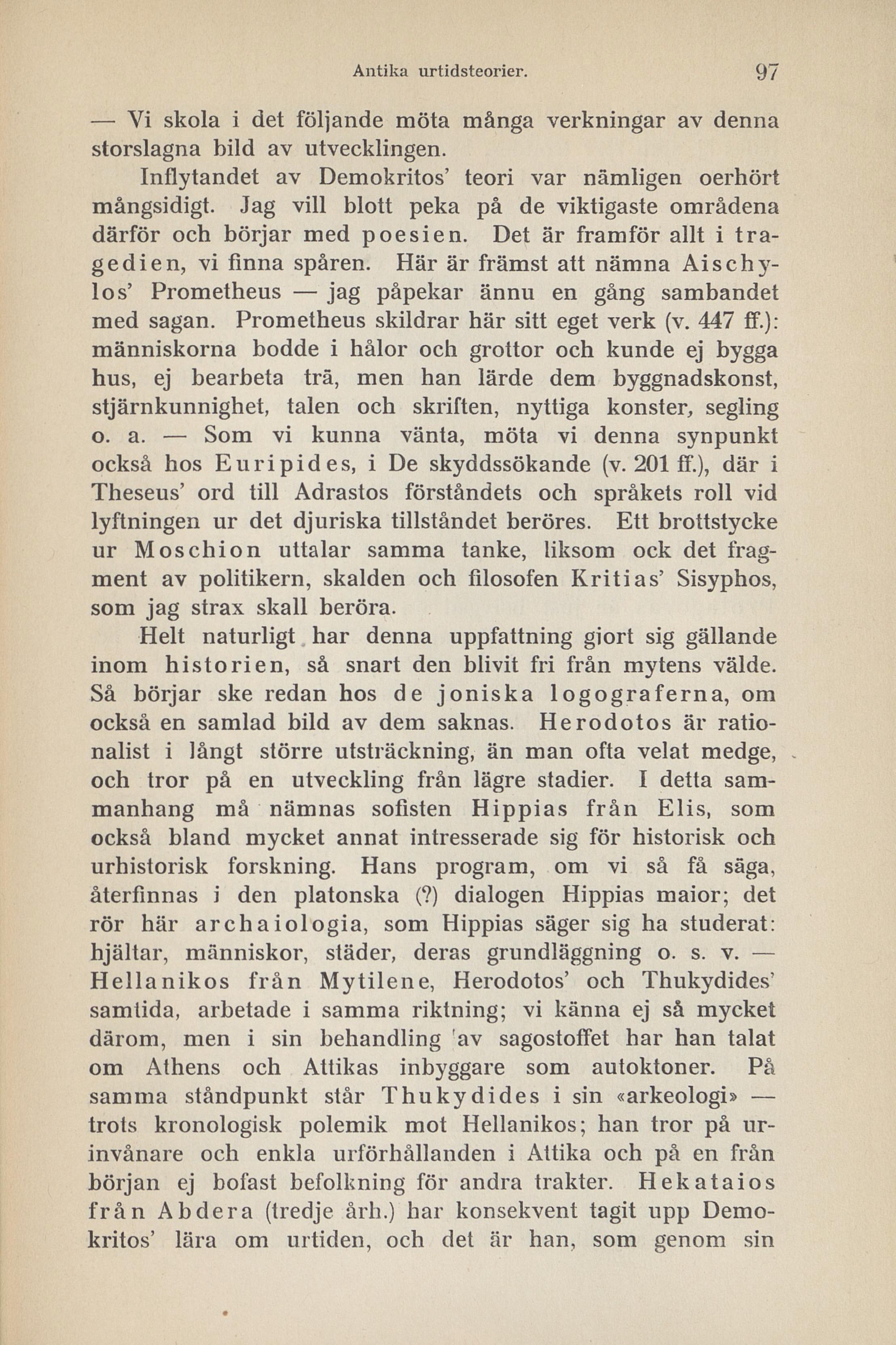 samma ståndpunkt står Thukydides i sin «arkeologi»