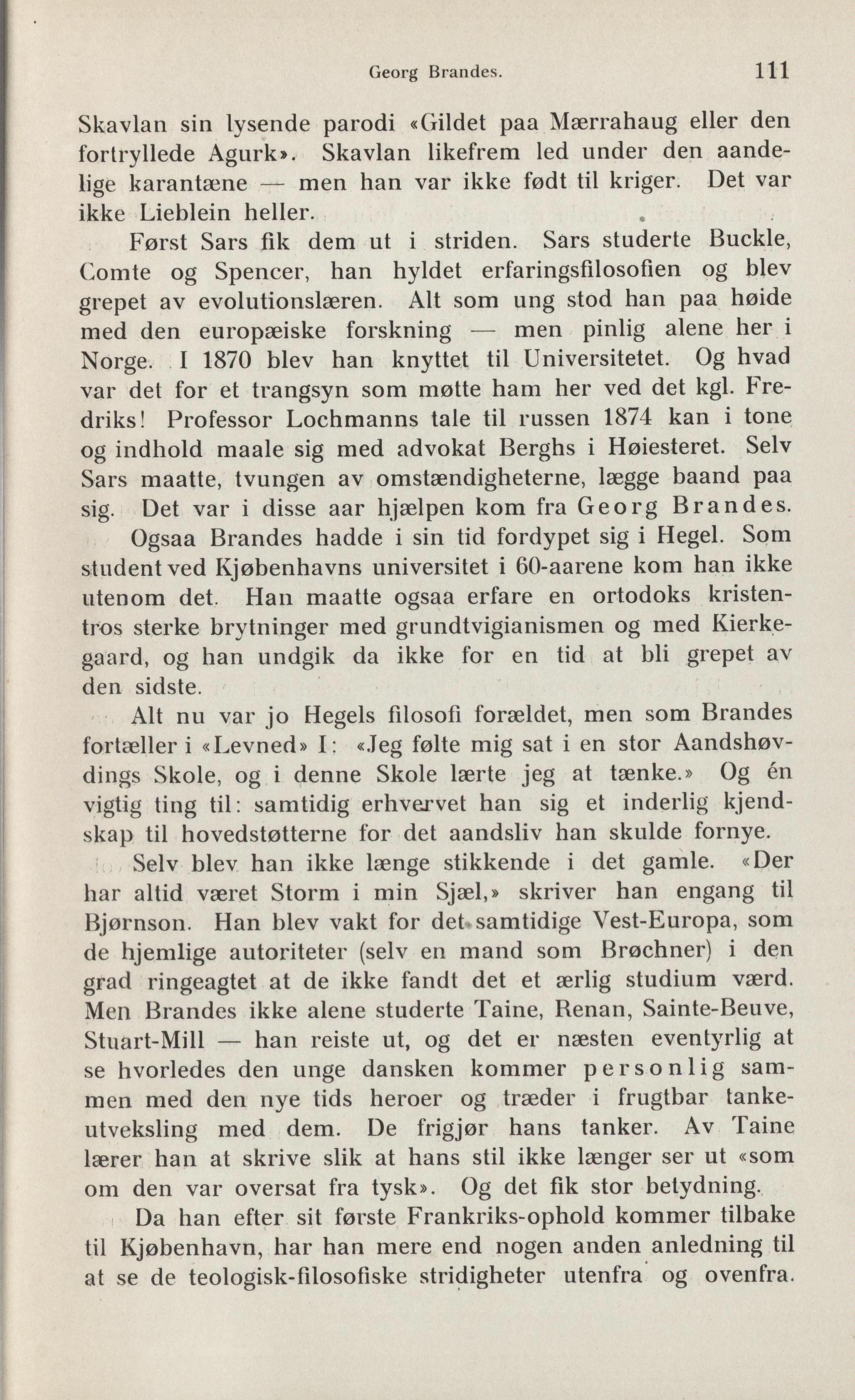 Ogsaa Brandes hadde i sin tid fordypet sig i Hegel. Som