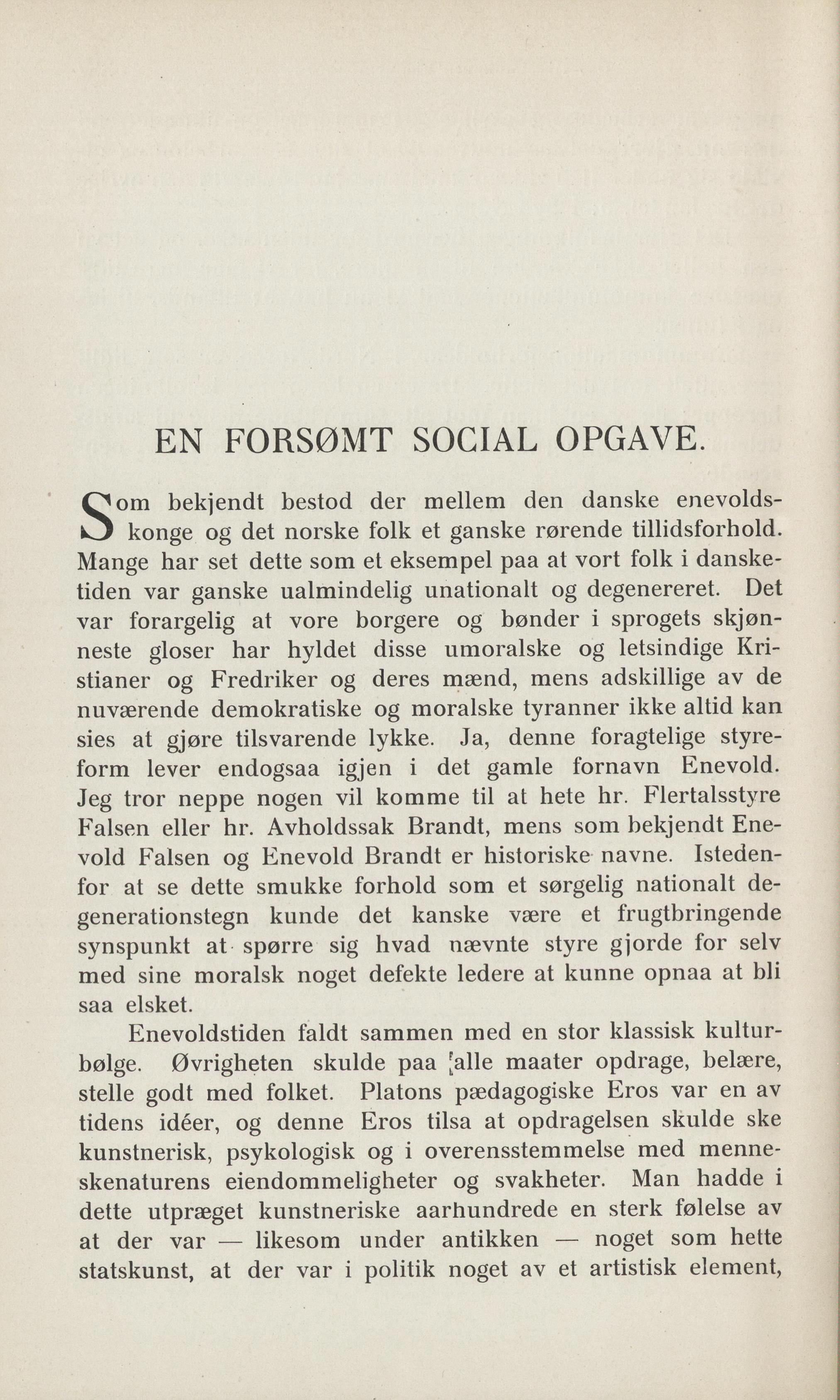 EN FORSØMT SOCIAL OPGAVE.