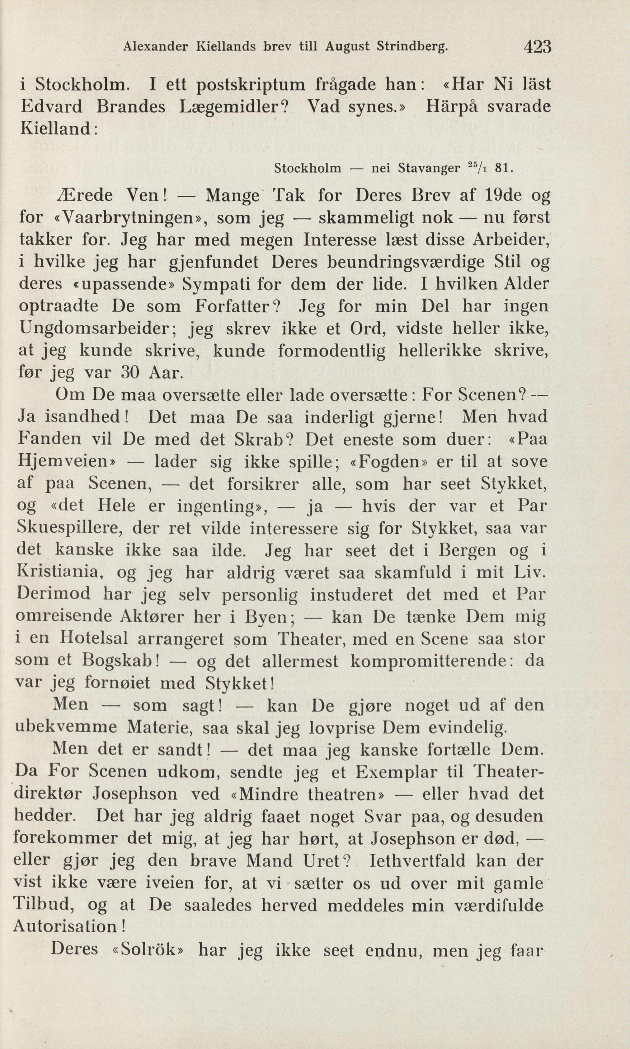 Full resolution (JPEG) - On this page / på denna sida - John Landquist: Alexander Kiellands brev till August Strindberg