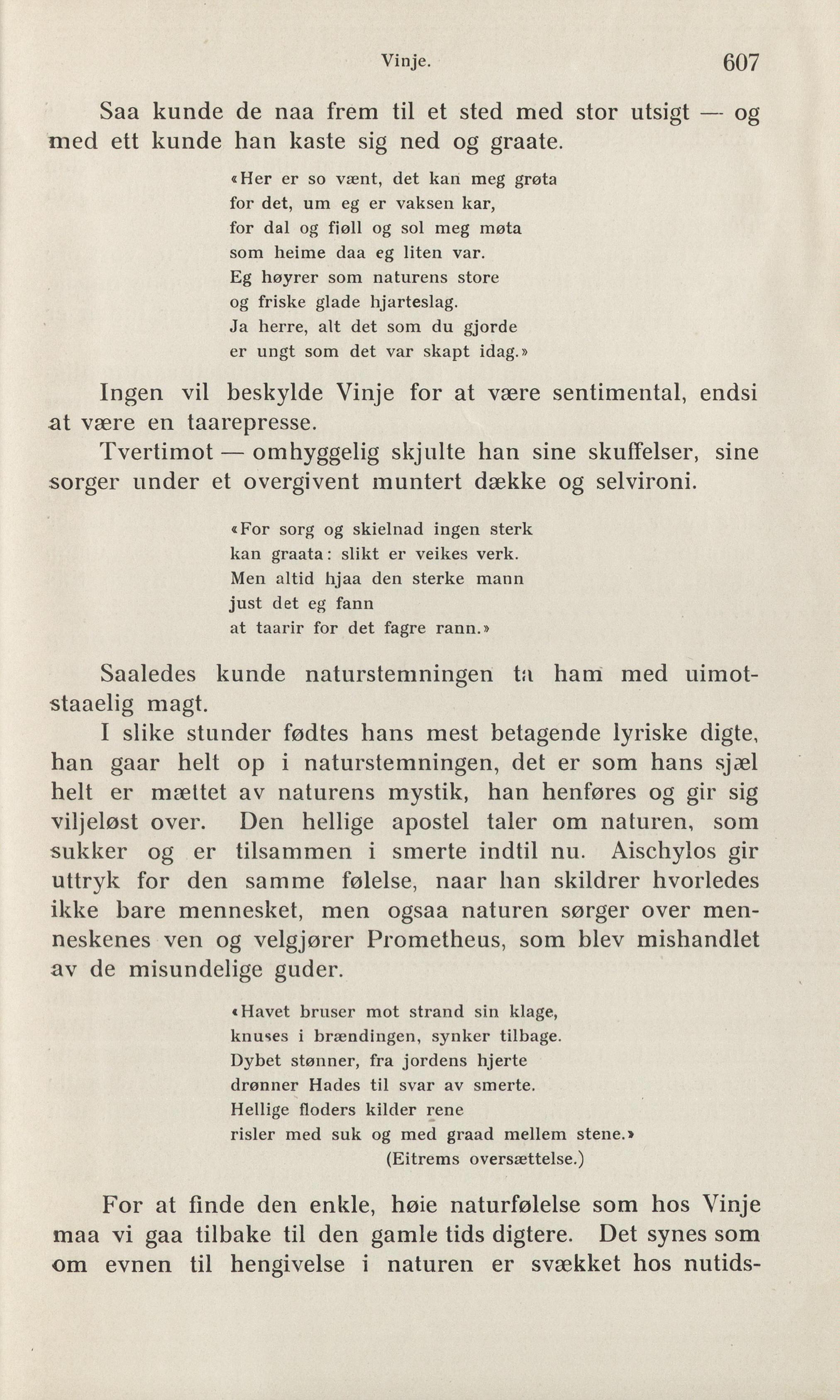 For at finde den enkle, høie naturfølelse som hos Vinje