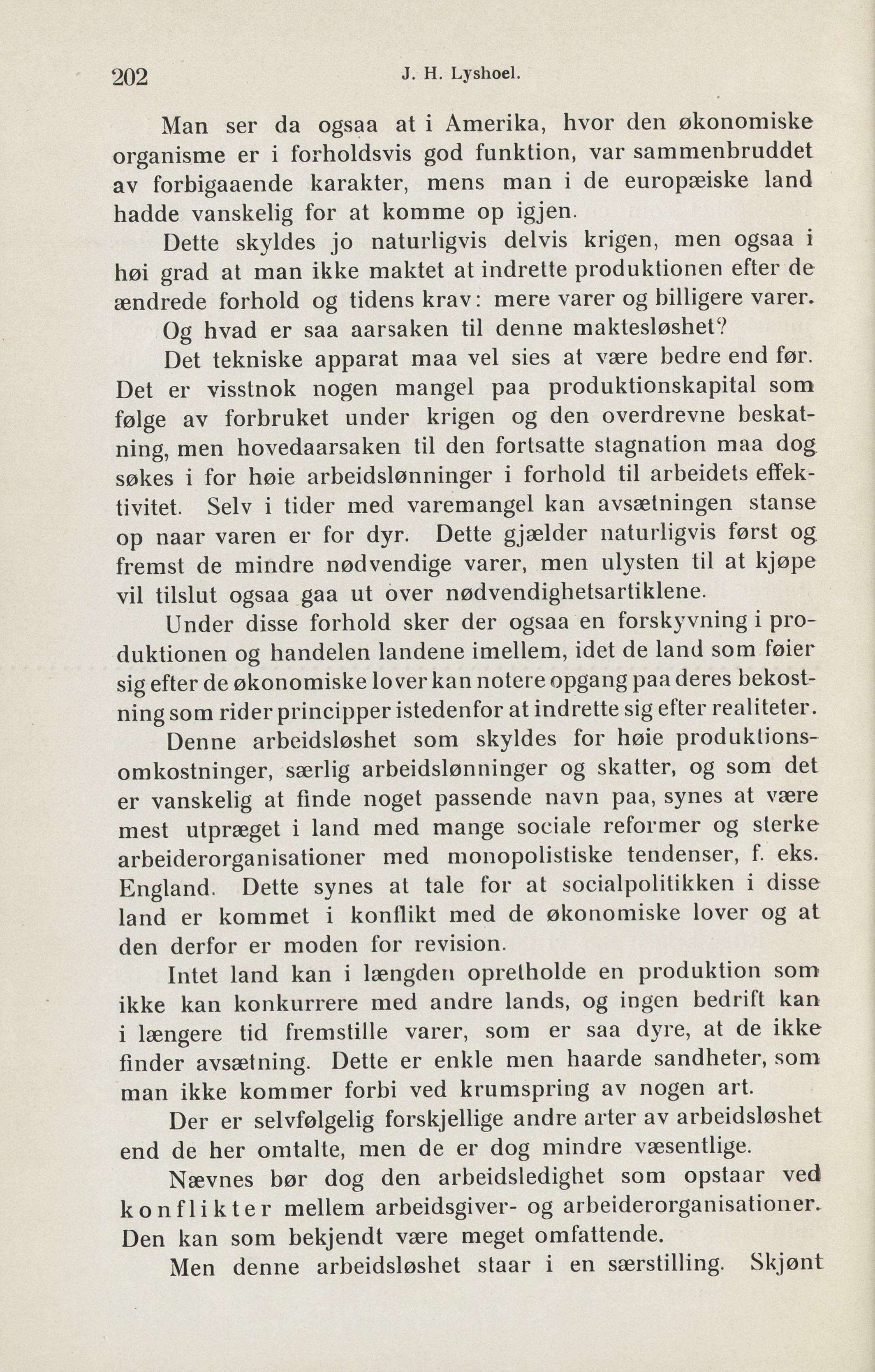 Full resolution (JPEG) - On this page / på denna sida - J. H. Lyshoel: Arbeidsløshetens problem