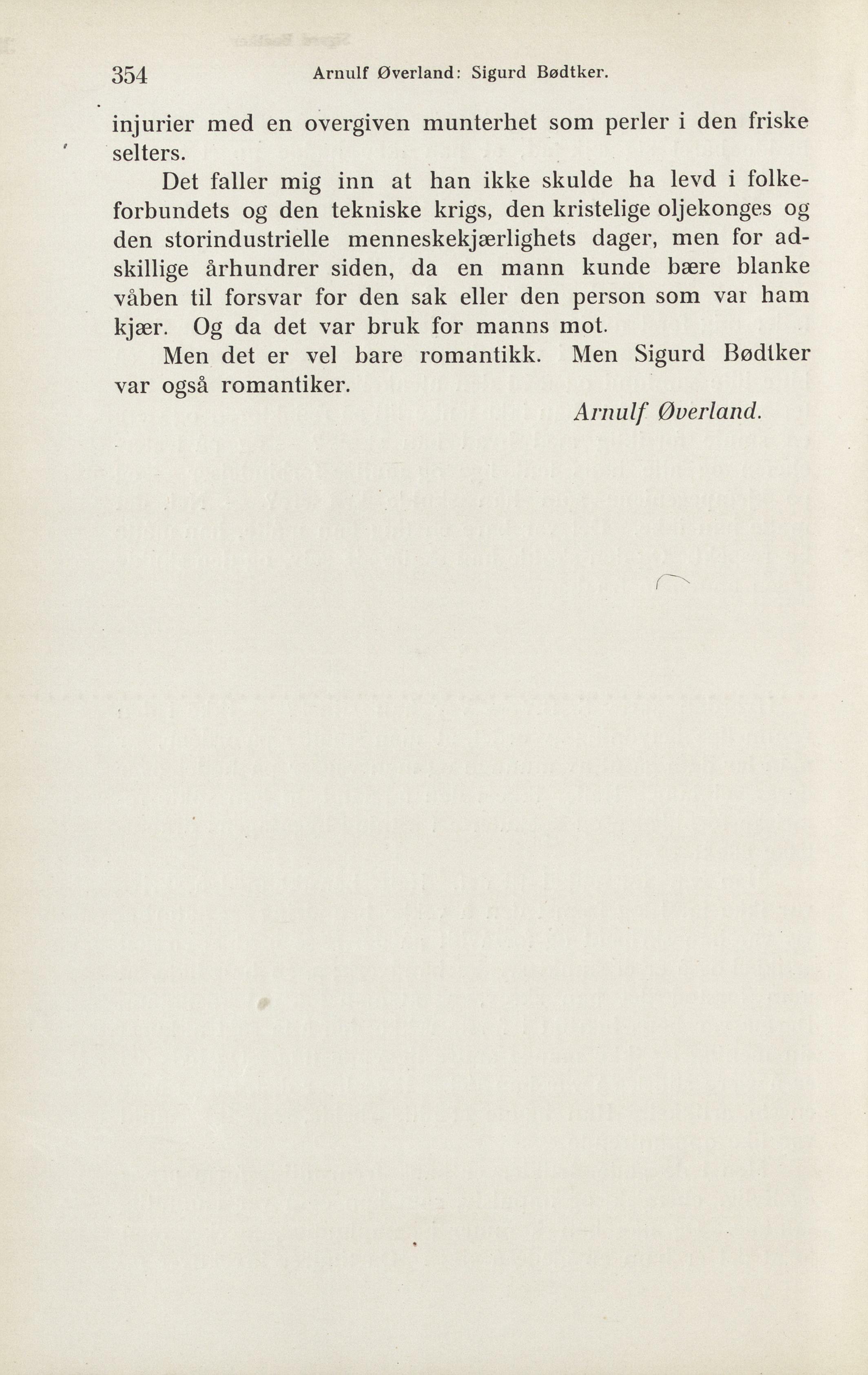 Men det er vel bare romantikk. Men Sigurd Bødtker
