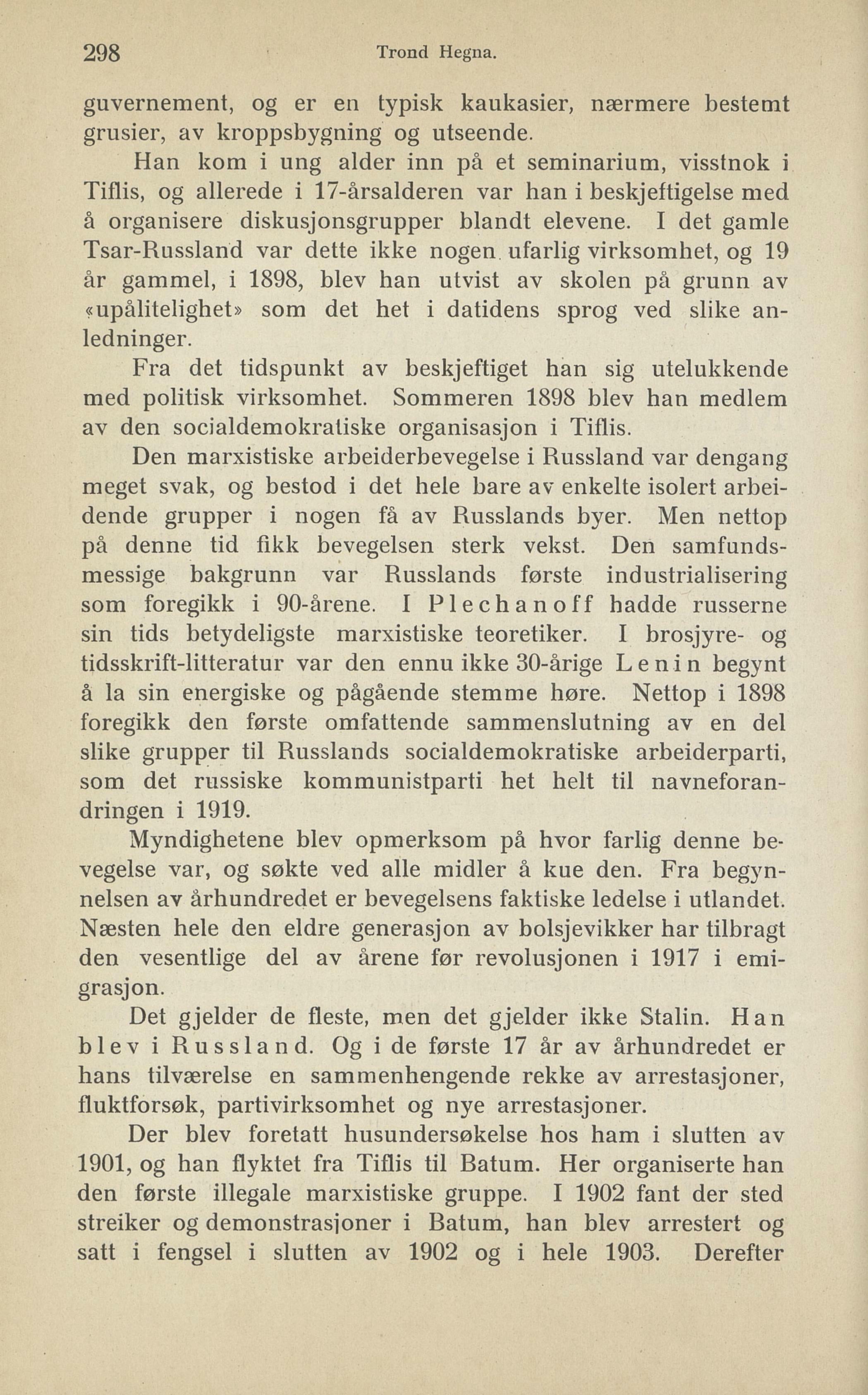 Tiflis, og allerede i 17-årsalderen var han i beskjeftigelse med