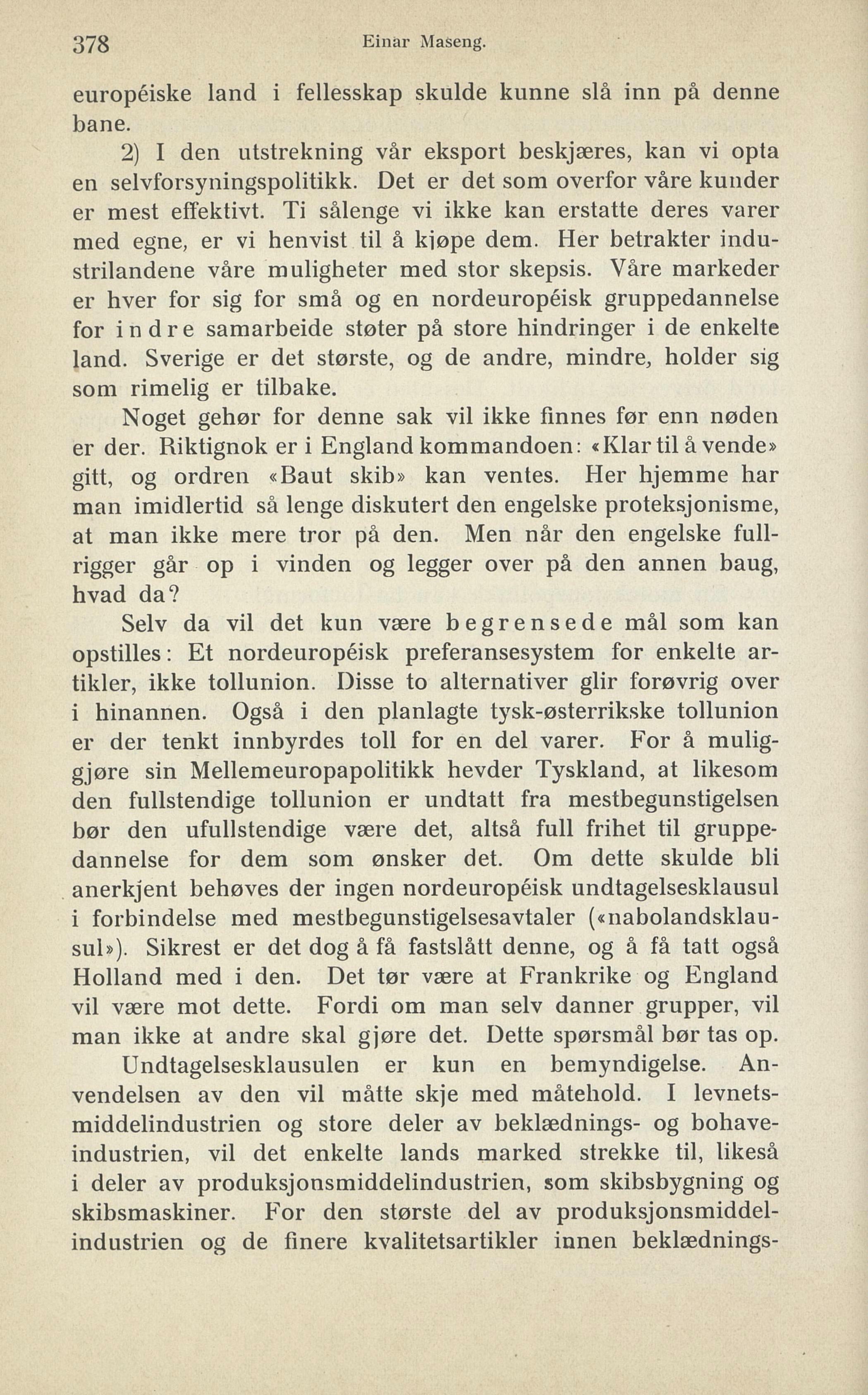 Full resolution (JPEG) - On this page / på denna sida - Einar Maseng: Nye signaler i handelspolitikken - IV. De nordiske folks vei