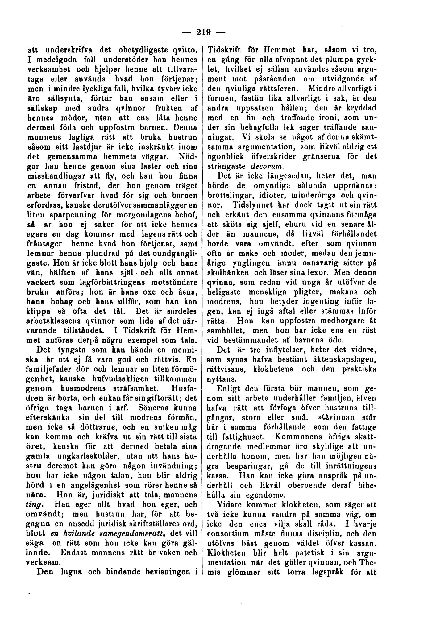 argumentation när det gäller qvinnan, och