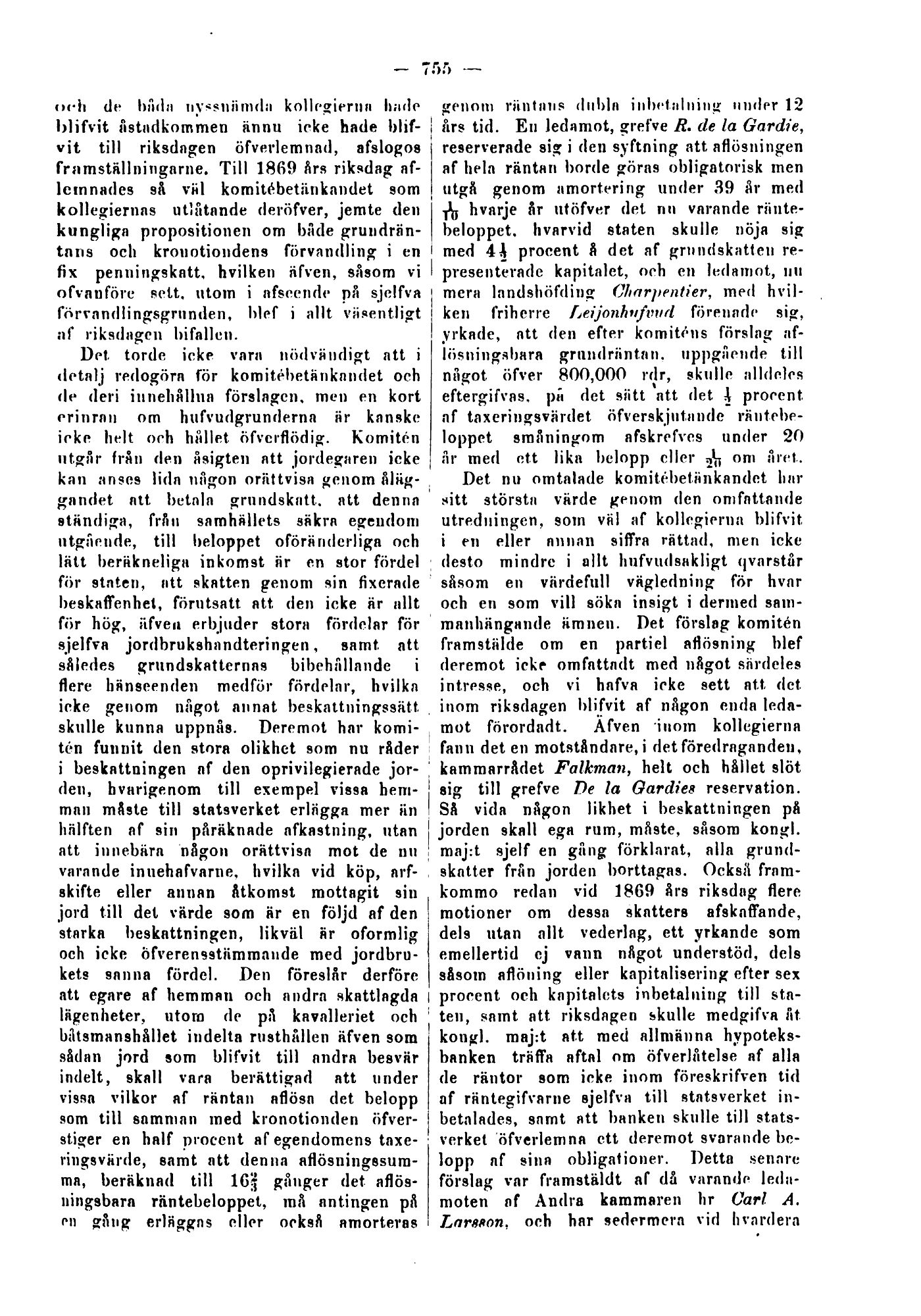 års tid. En ledamot, grefve R. de la Gardie,