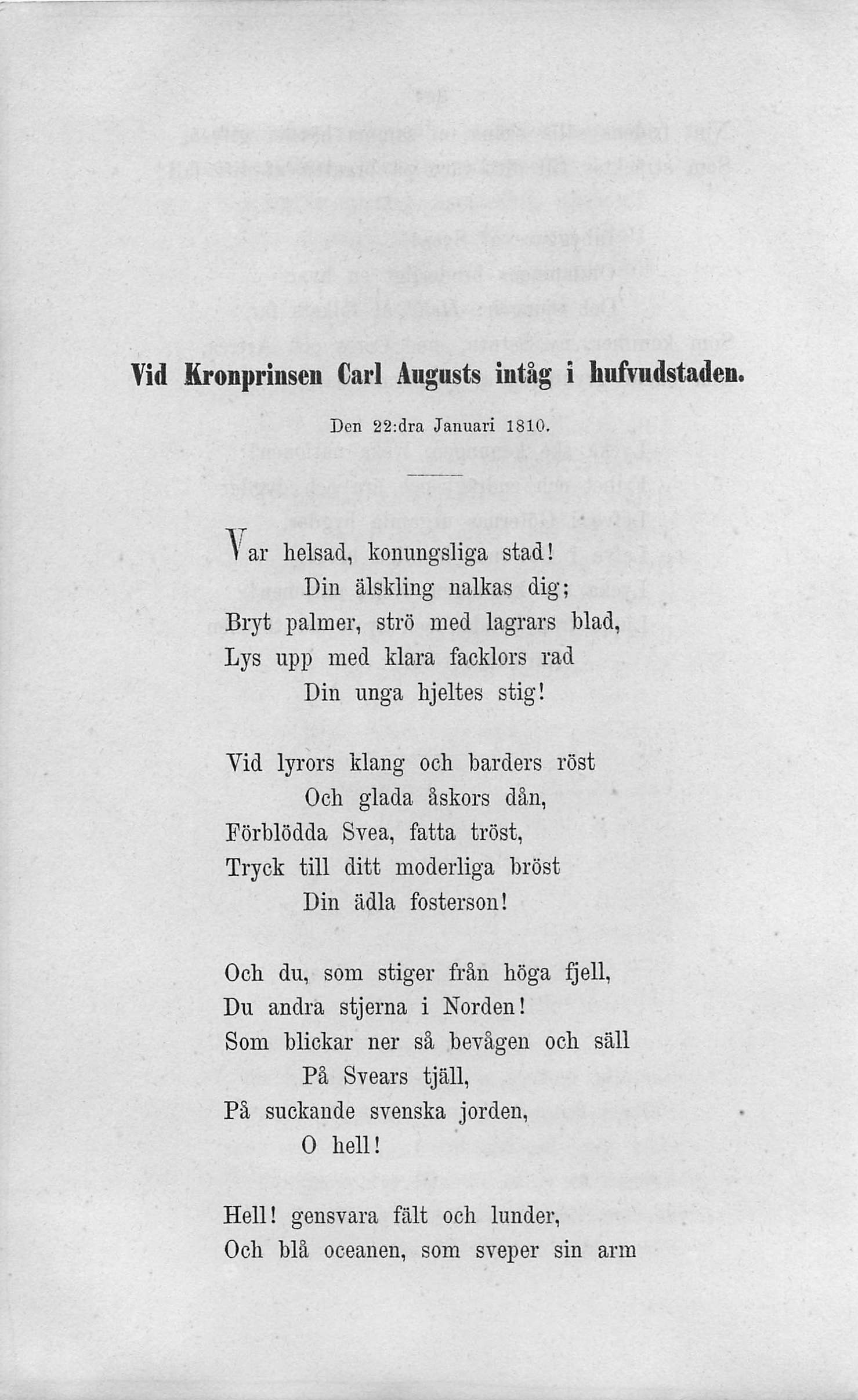 Vid Kronprinsen Carl Augusts intåg i hufvudstaden.