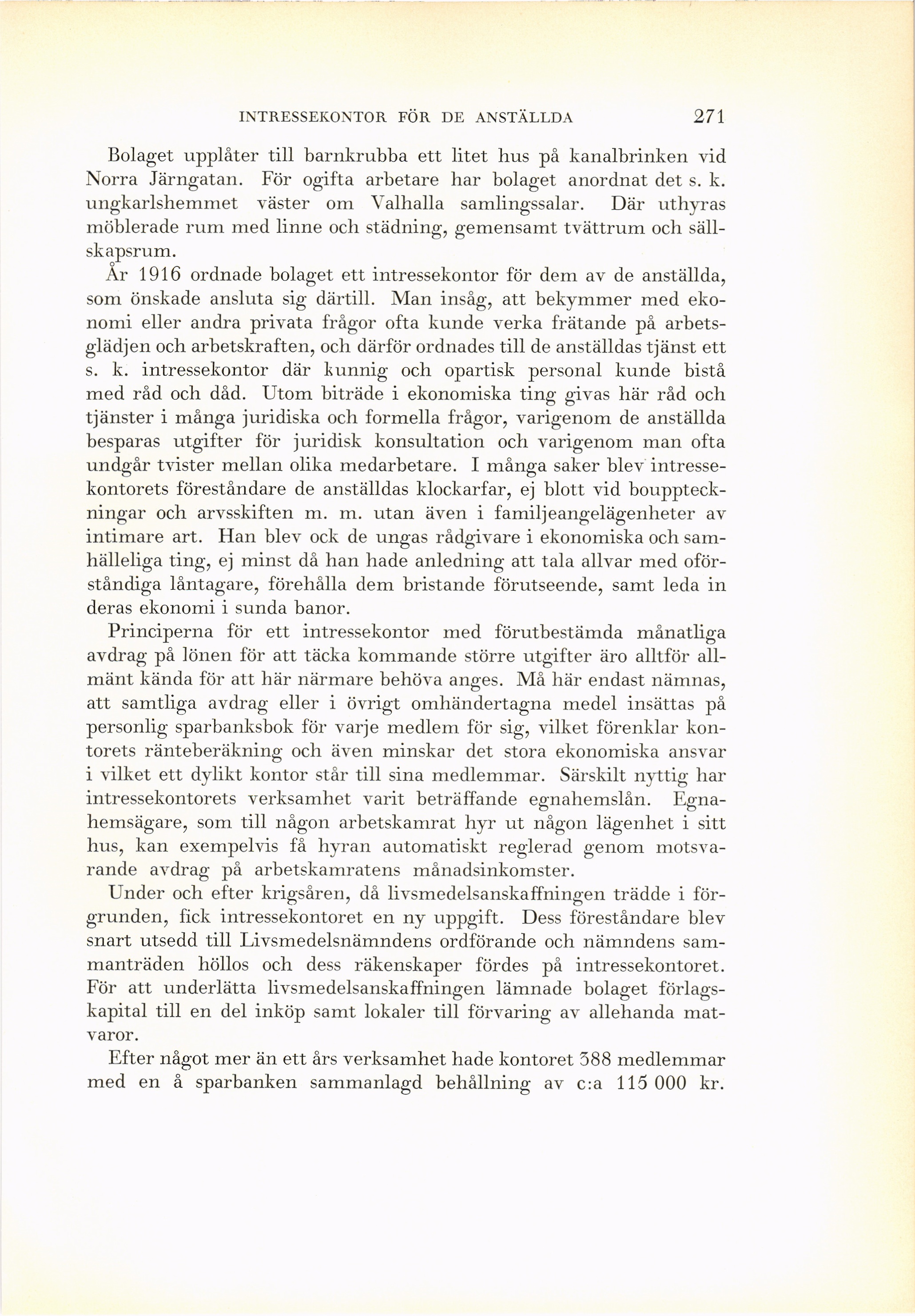 Ar 1916 ordnade bolaget ett intressekontor för dem av de anställda,