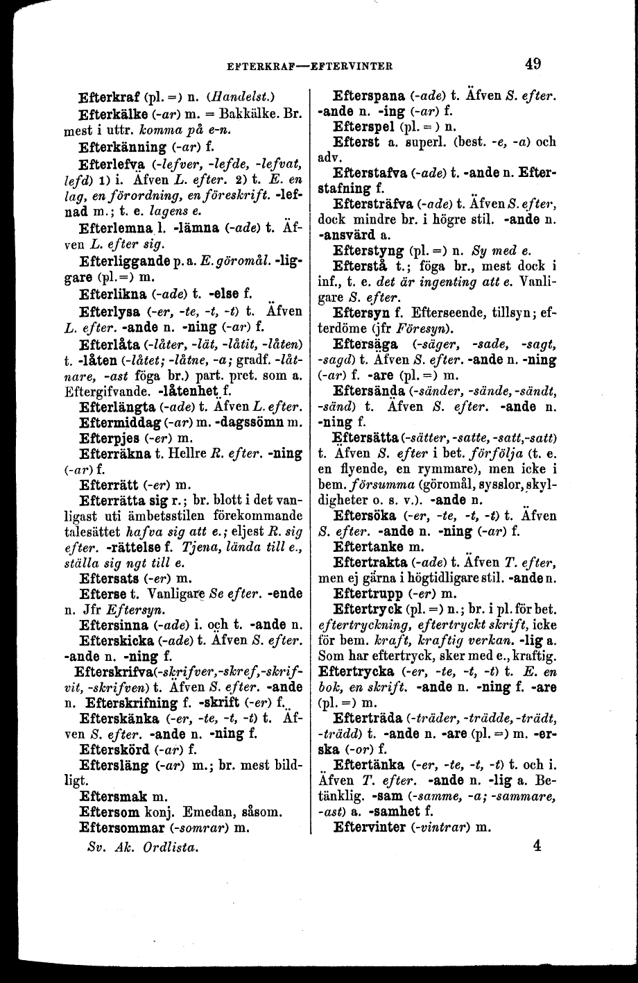 L. efter. -ande n. -ning (-ar) f.