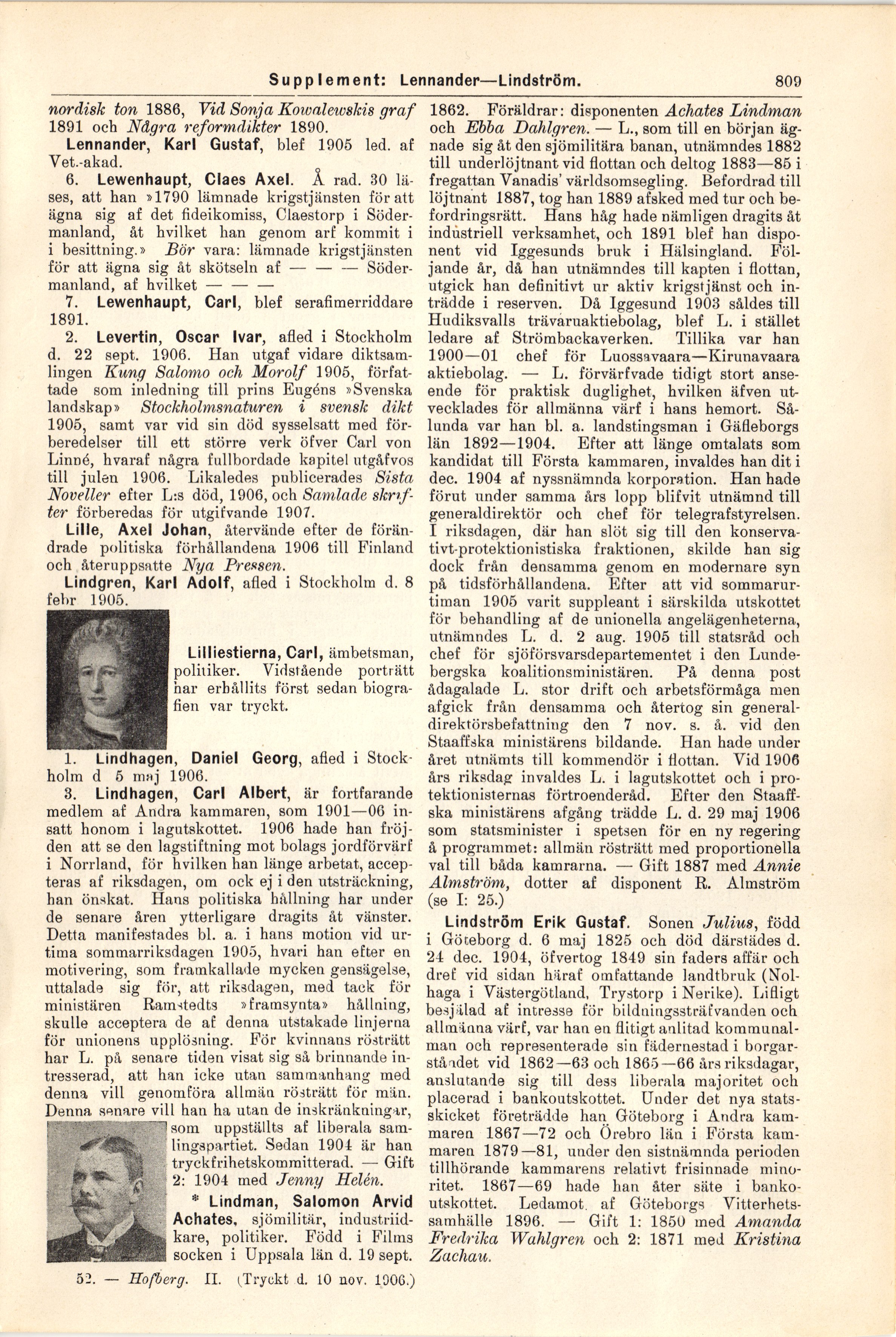 1. Lindhagen, Daniel Georg, afled i Stockholm