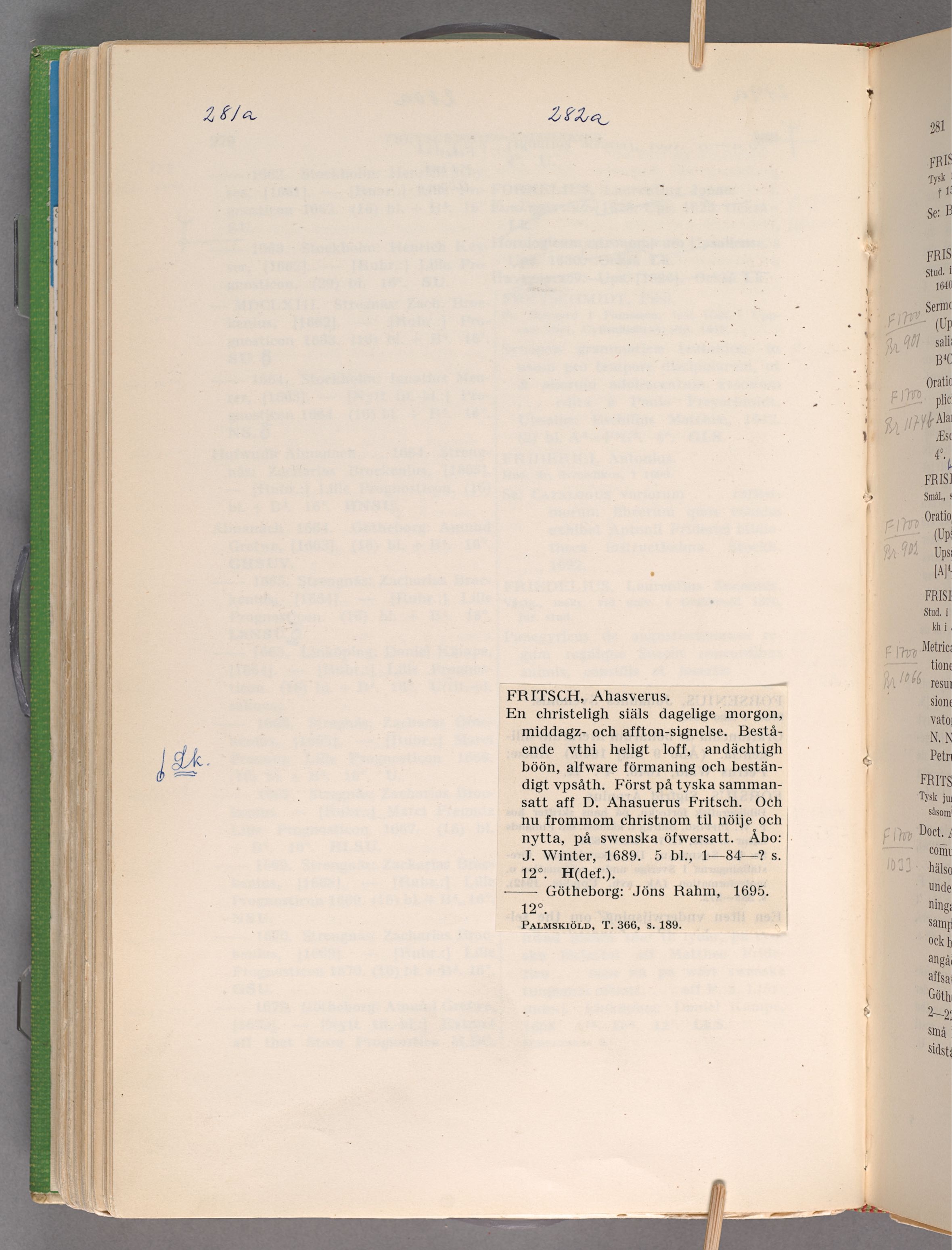 PALMSKIÖLD, T. 366, s. 189. - & «