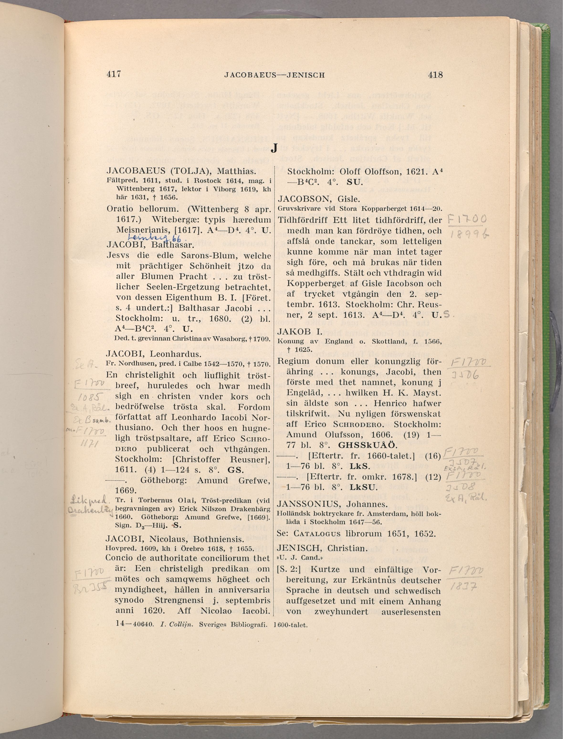 14—40640. I. Collijn. Sveriges Bibliografi.