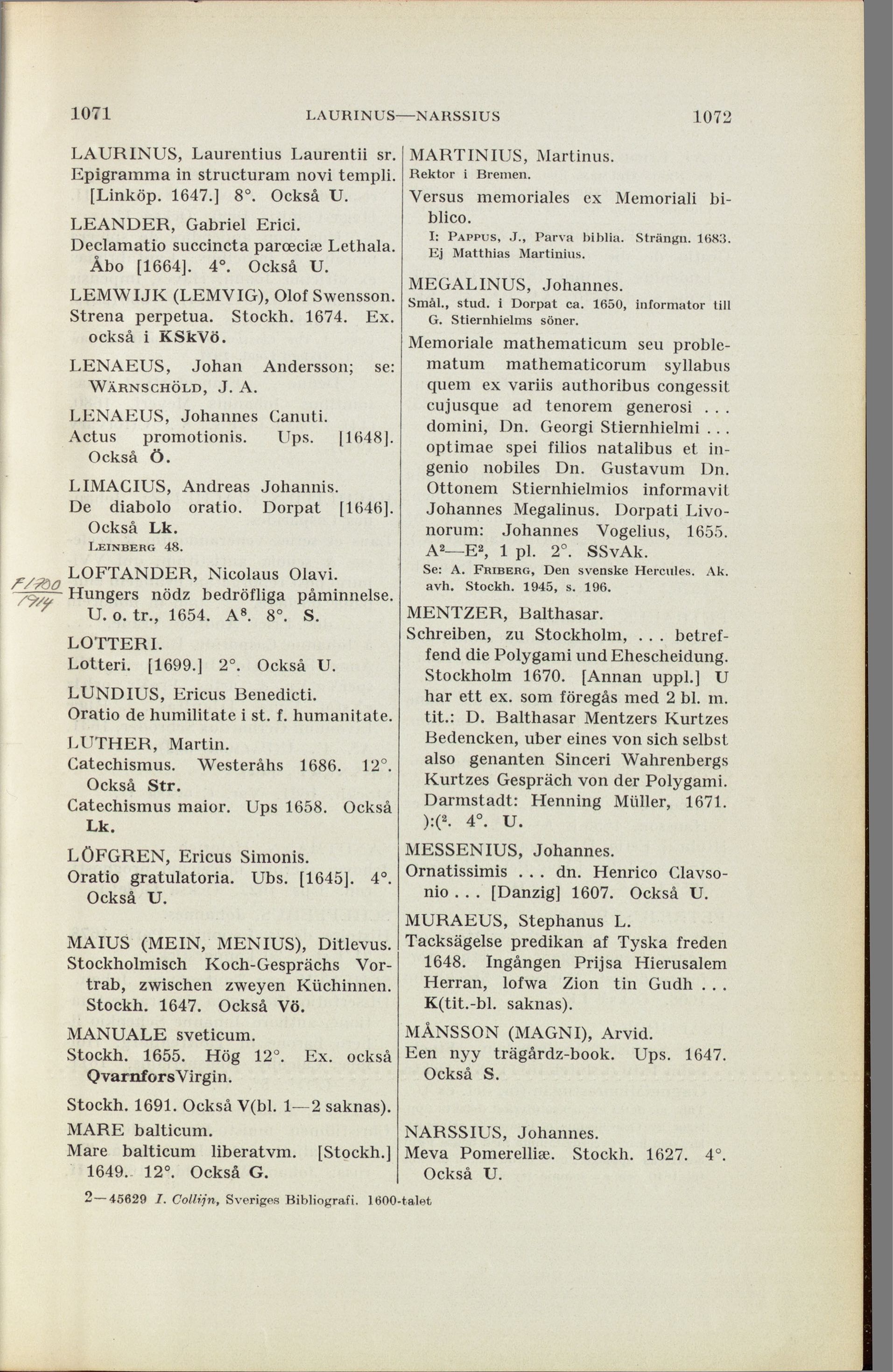 2—45629I. Colliy’n, Sveriges Bibliografi. 1600-talet