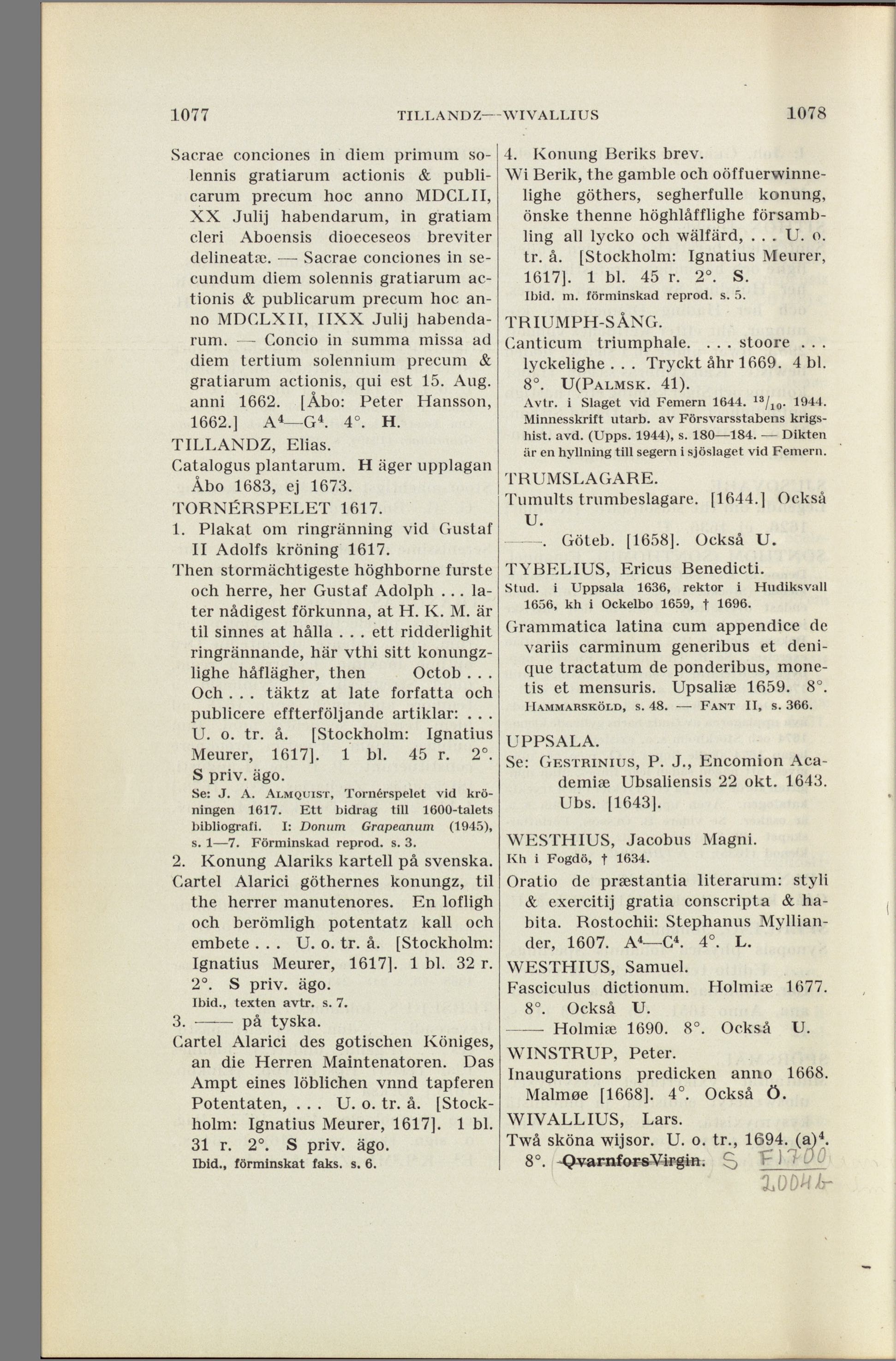 1077 TILLANDZ—"W’IVALLIUS 1078