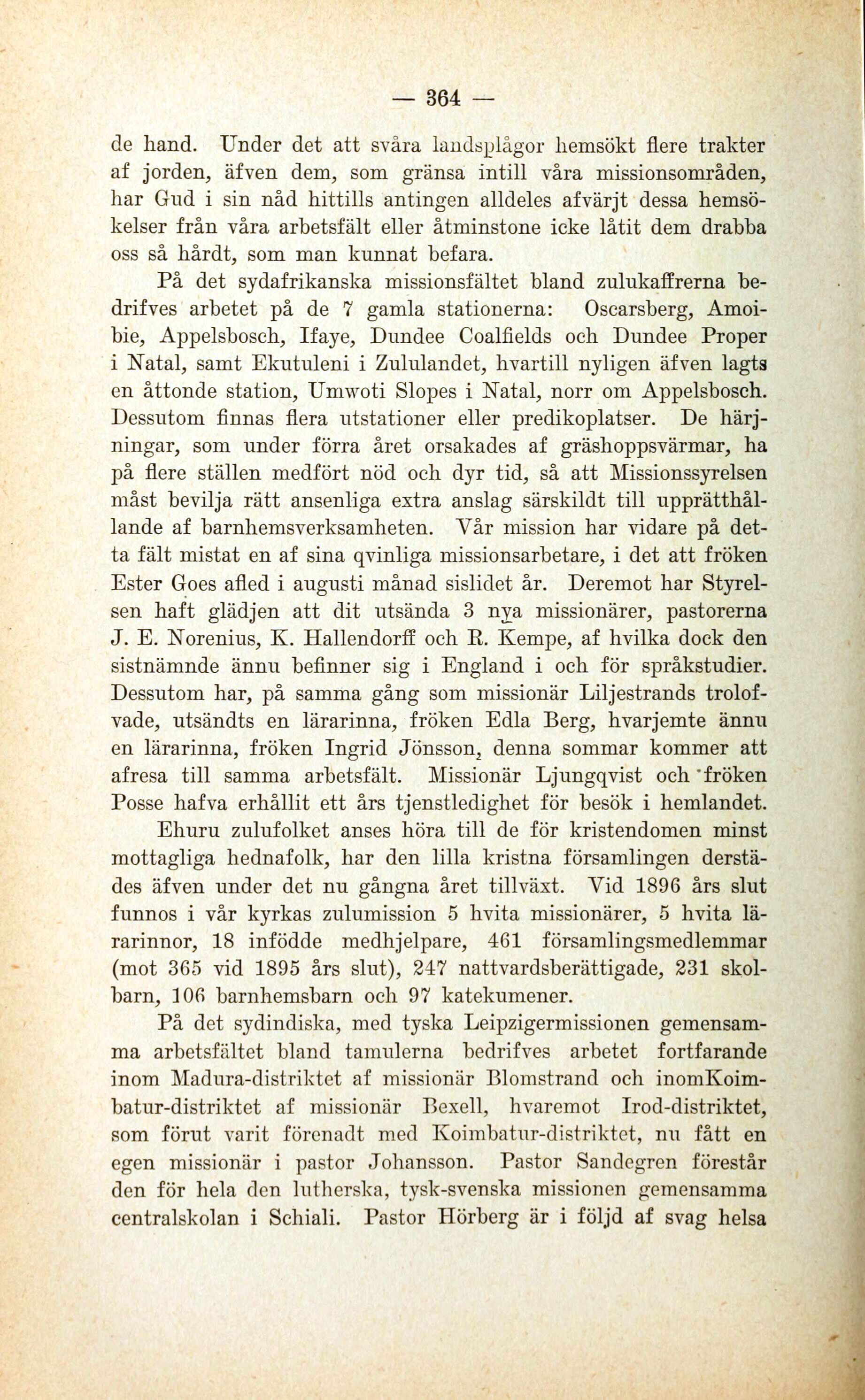egen missionär i pastor Johansson. Pastor Sandegren förestår