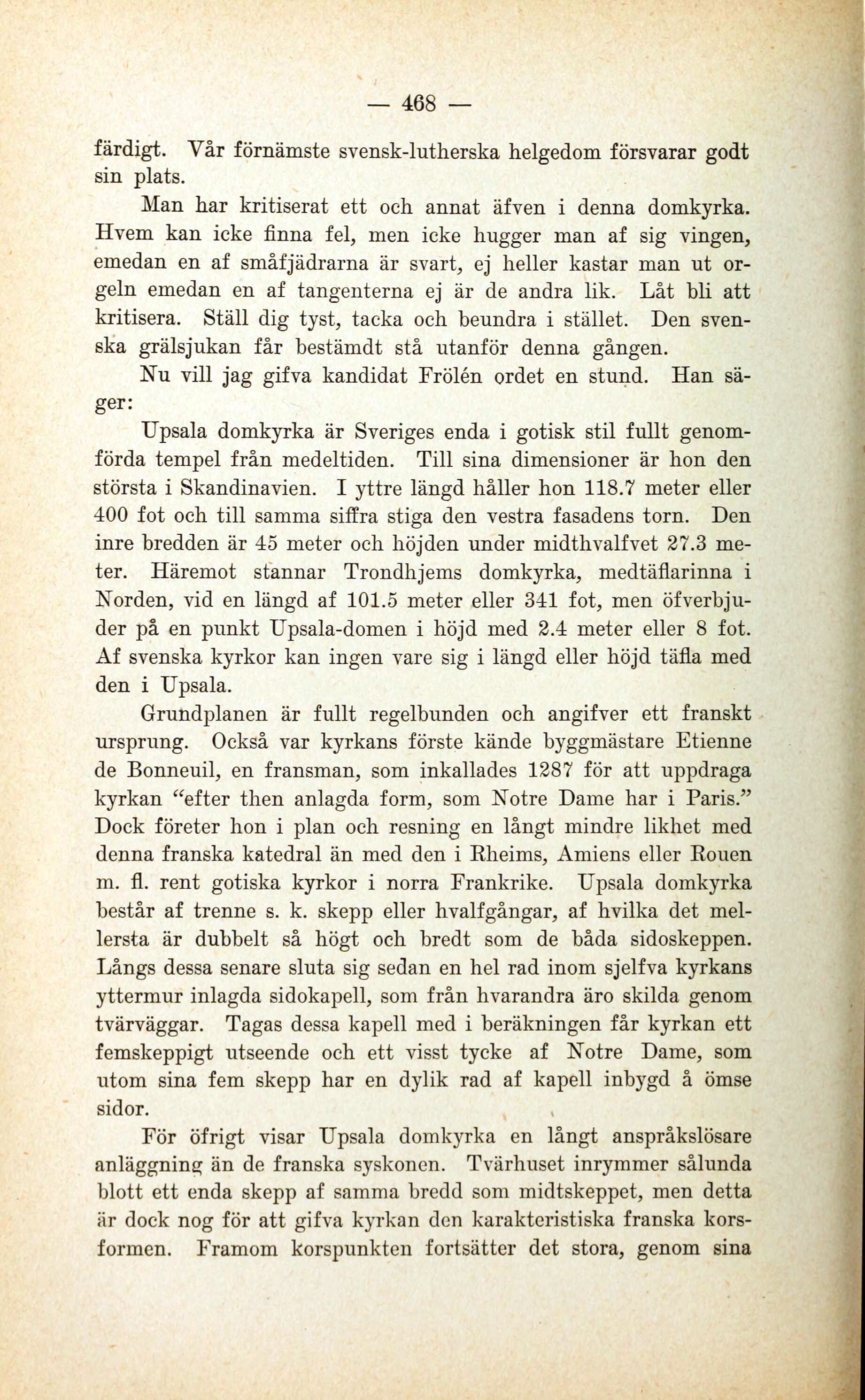 För öfrigt visar Upsala domkyrka en långt anspråkslösare
