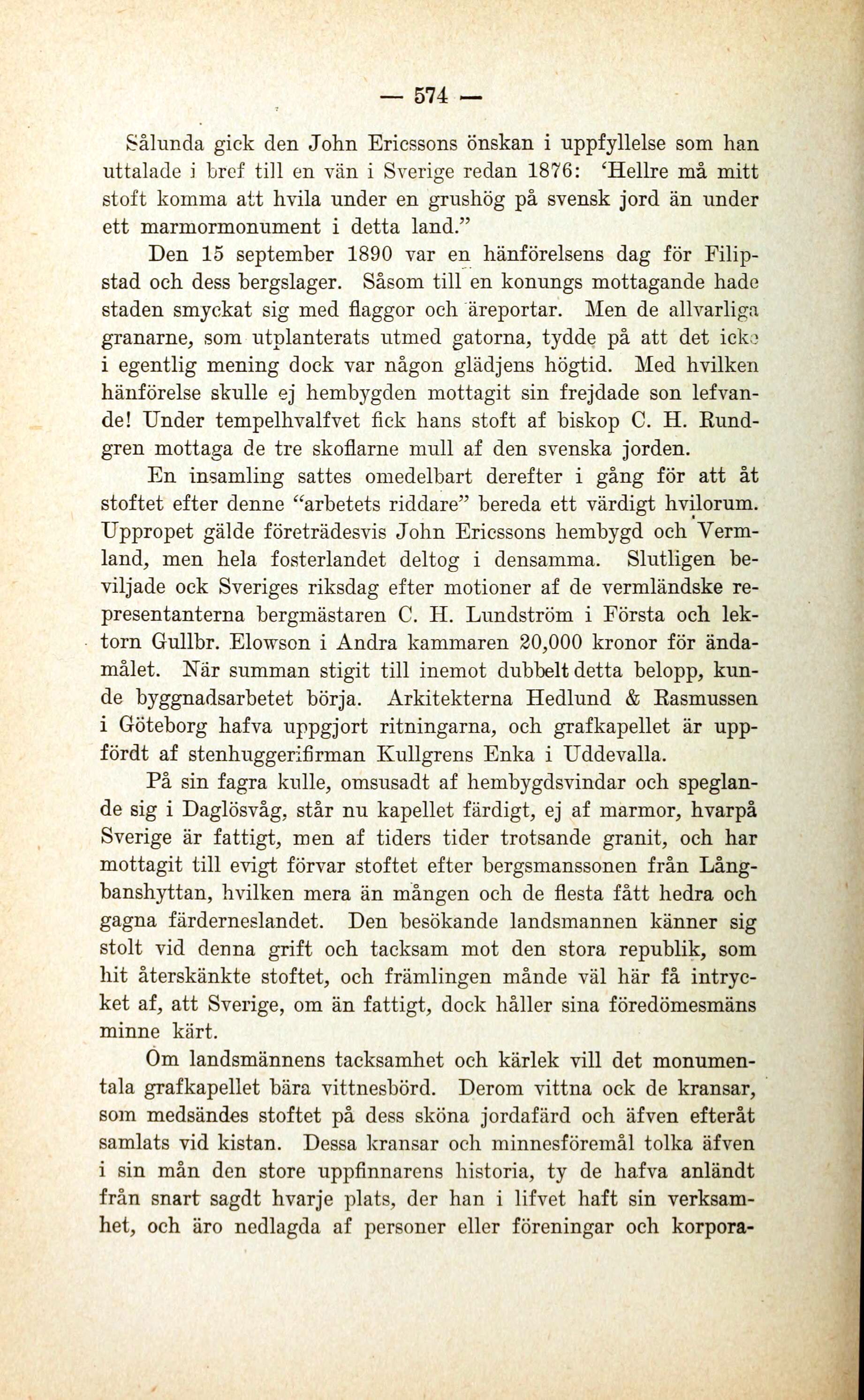 Sålunda gick den John Ericssons önskan i uppfyllelse som han