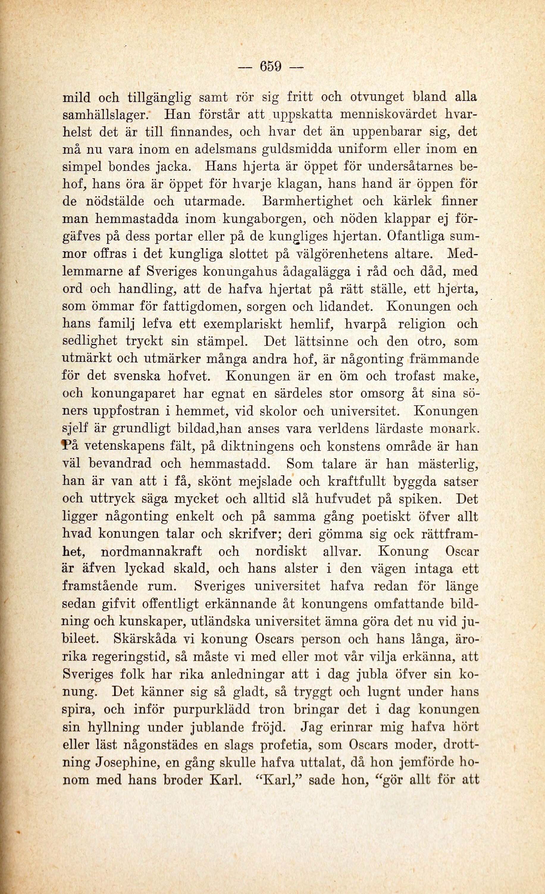 bileet. Skärskåda vi konung Oscars person och hans långa, äro-