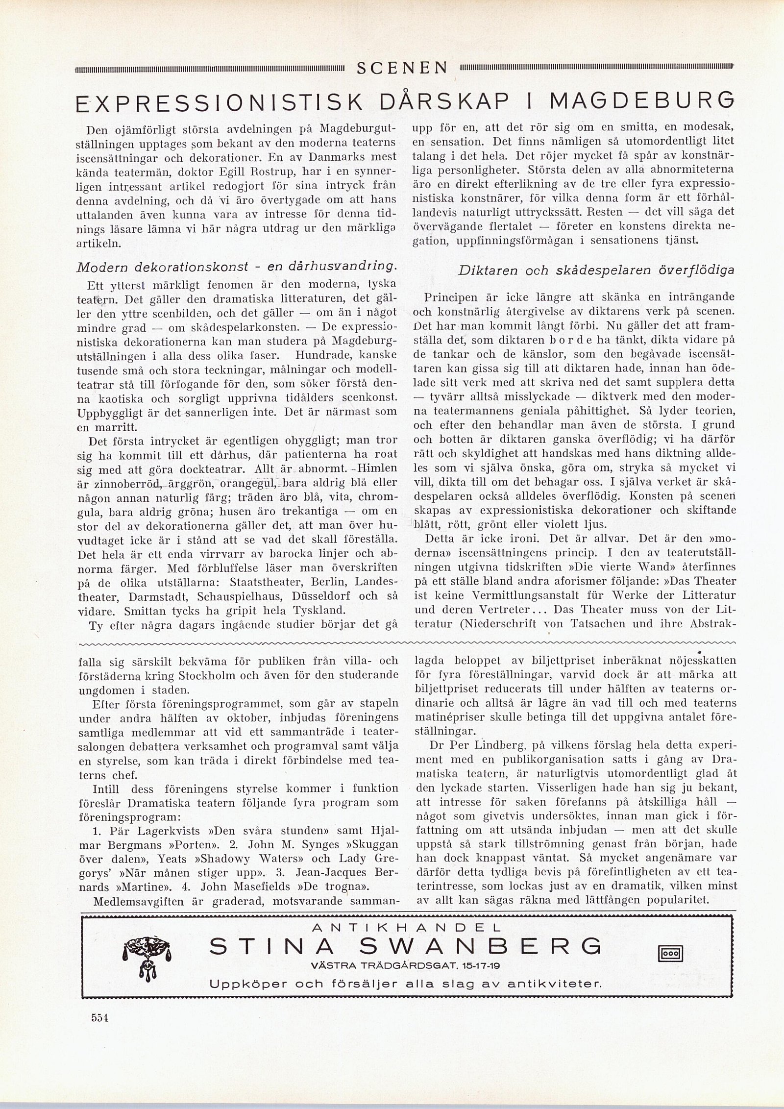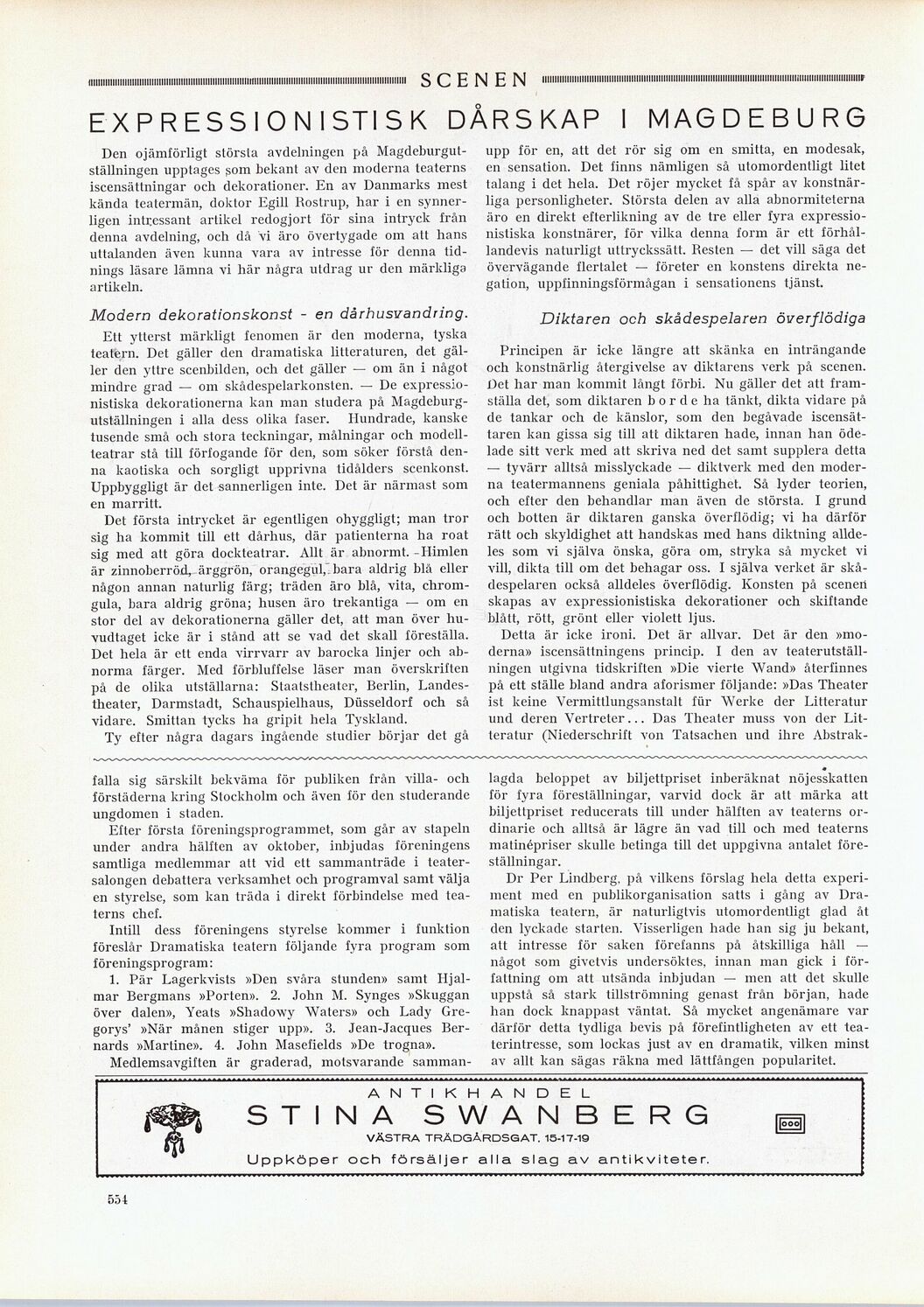 teaterutställningen utgivna tidskriften »Die vierte Wand» återfinnes