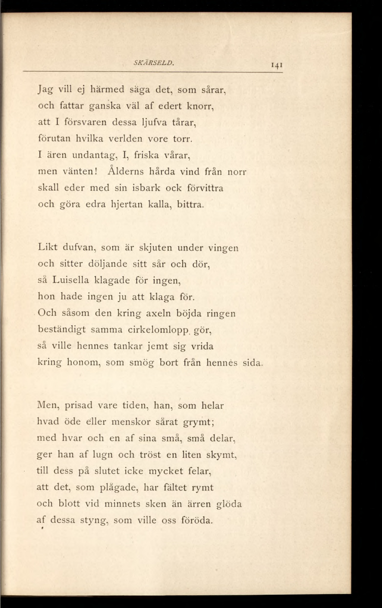 och blott vid minnets sken än ärren glöda