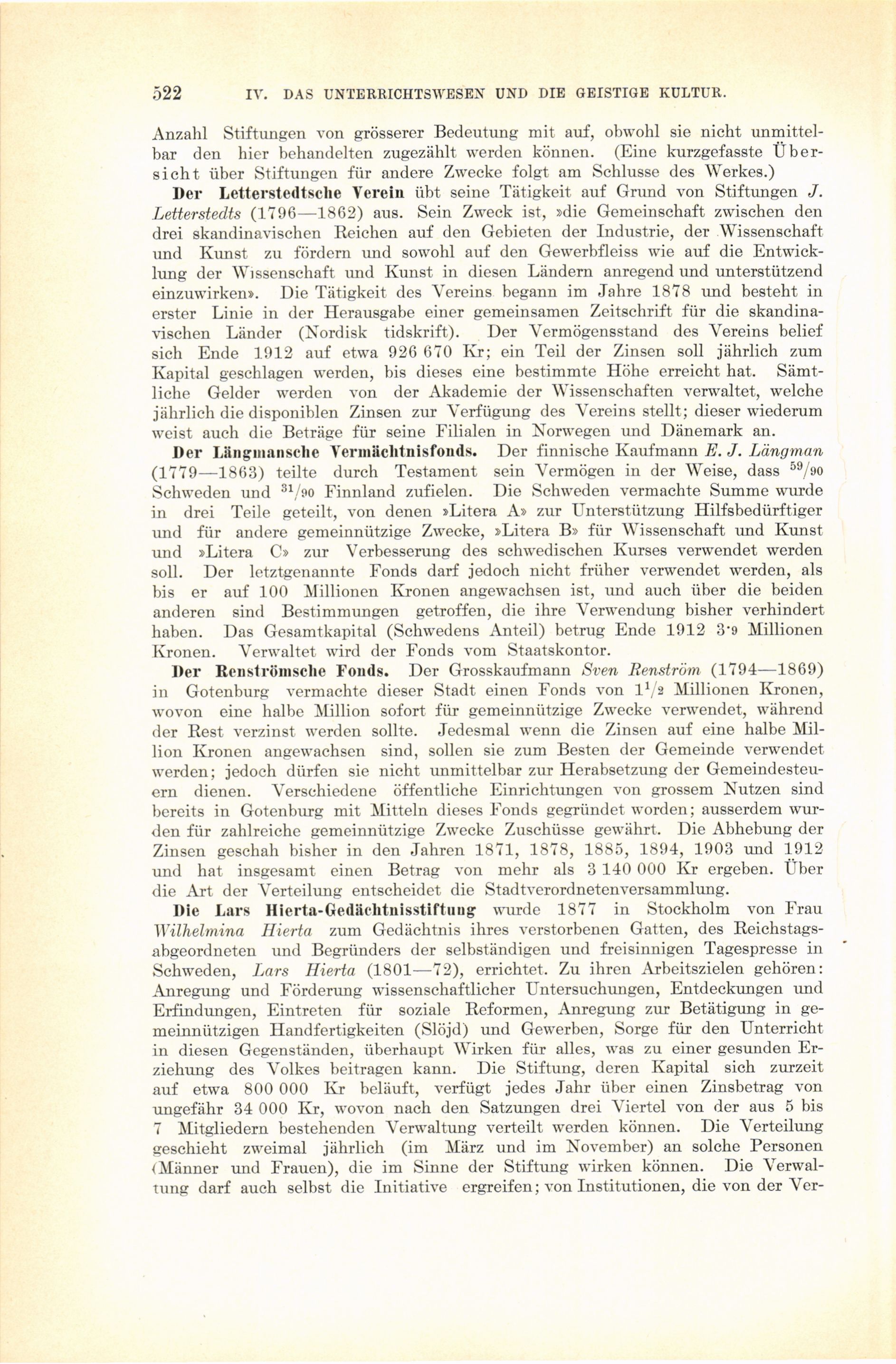 Full resolution (JPEG) - On this page / på denna sida - IV. Unterrichtswesen und geistige Kultur. Einl. von P. E. Lindström - 8. Öffentliche Sammlungen und Institutionen für Wissenschaft und Kunst. Die periodische Presse - Sonstige bedeutende kulturelle Stiftungen. Von B. Lundstedt - Die Lars Hierta-Gedächtnisstiftung. Von G. Retzius