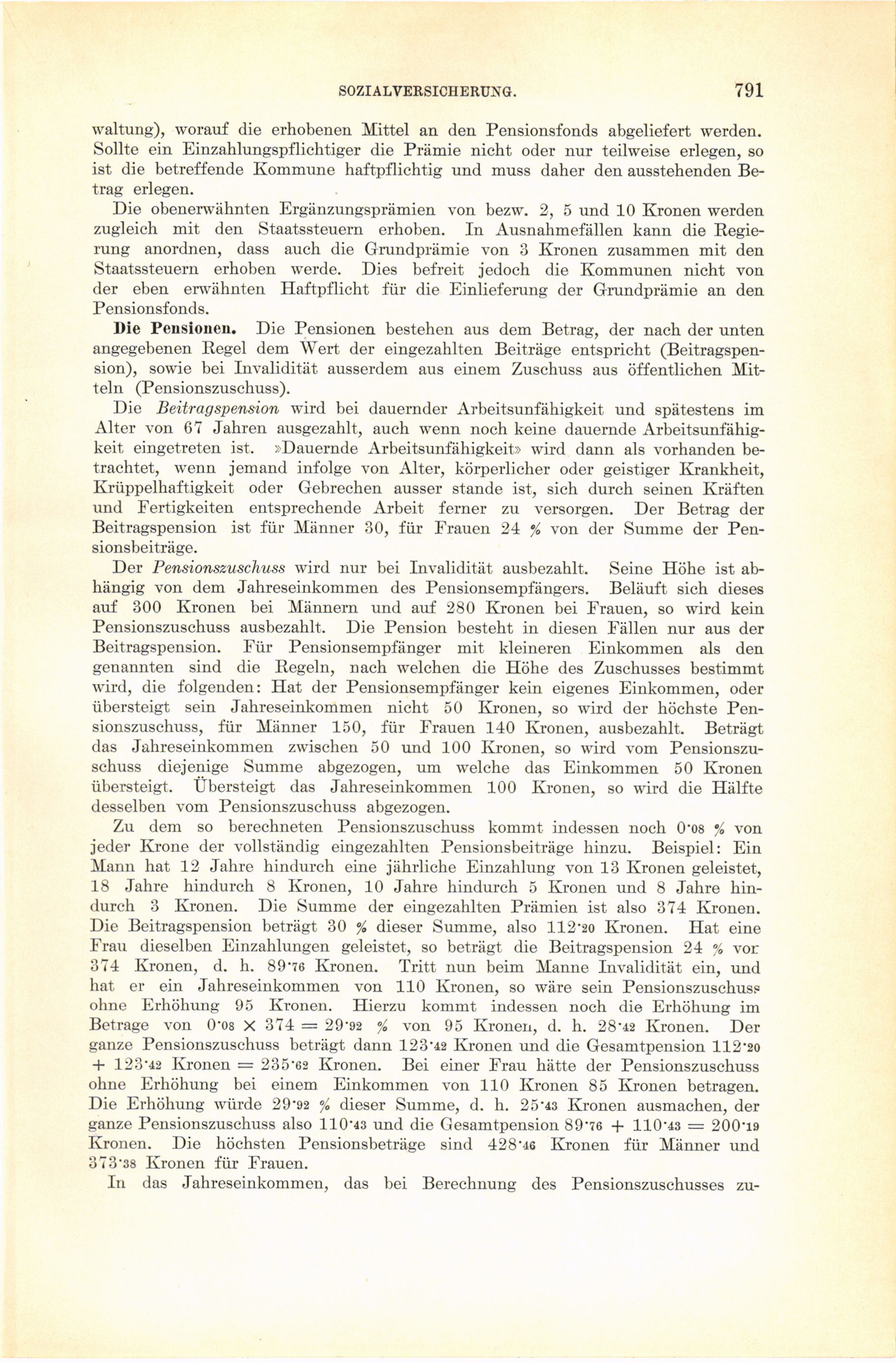 Kronen. Die höchsten Pensionsbeträge sind 428*46 Kronen für Männer und
