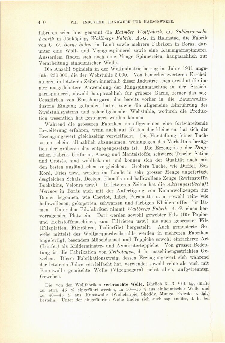 fabriken seien hier genannt die Malmöer Wollfabrik, die Sahlströmsche