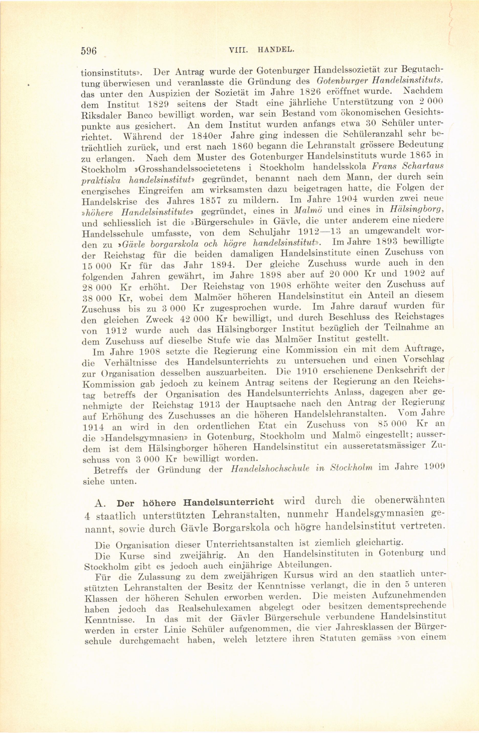 die »Handelsgymnasien» in Gotenburg, Stockholm und Malmö eingestellt;