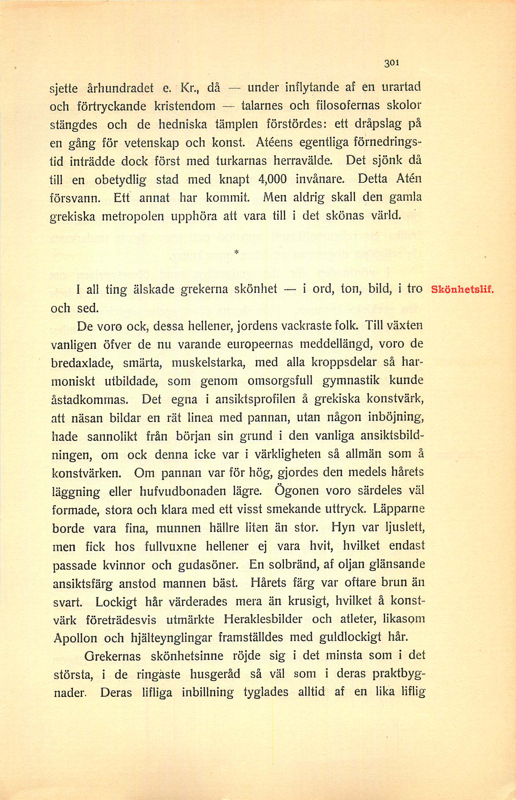 I all ting älskade grekerna skönhet — i ord, ton, bild, i tro Skönhetslif.