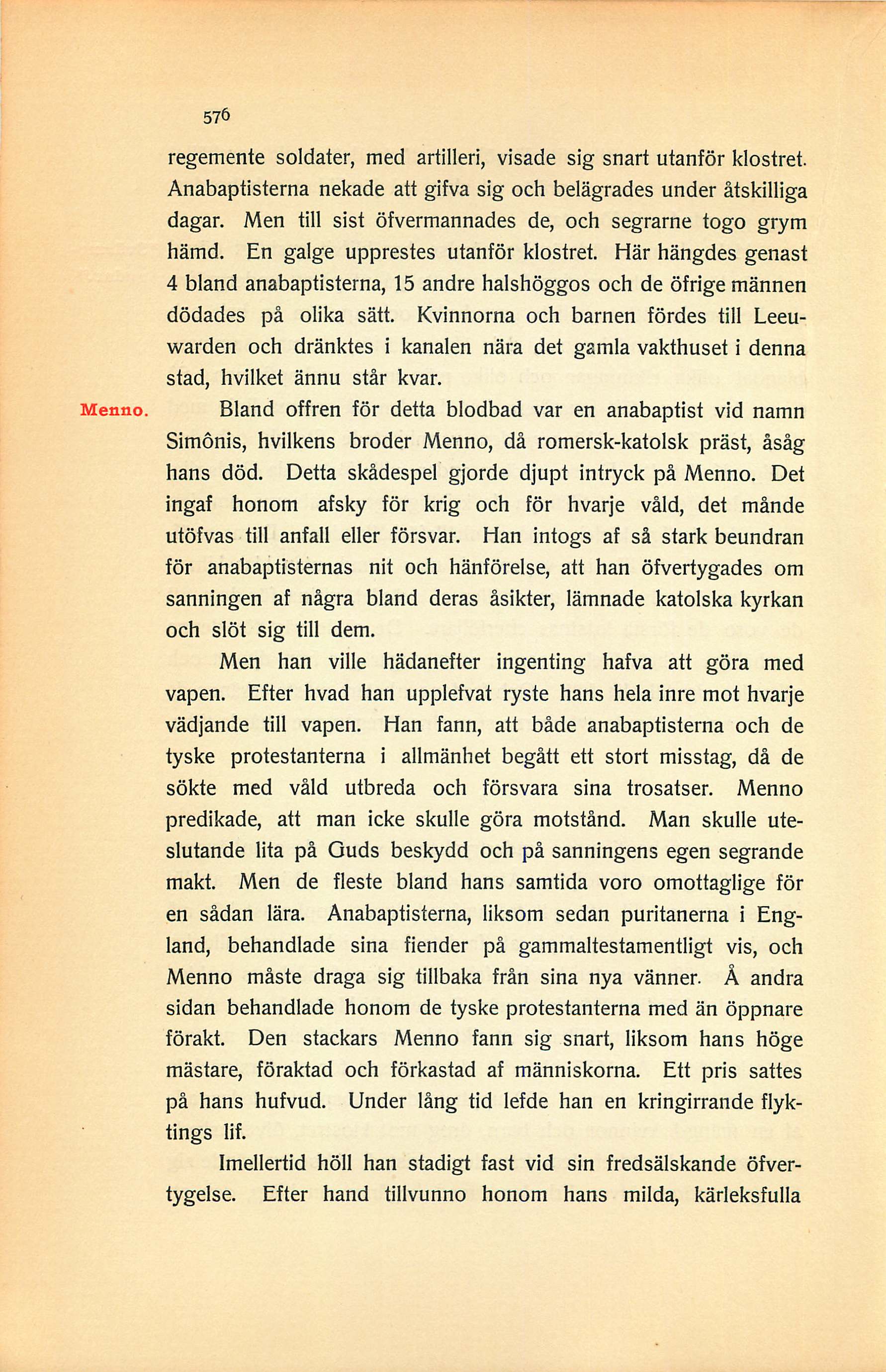sökte med våld utbreda och försvara sina trosatser. Menno