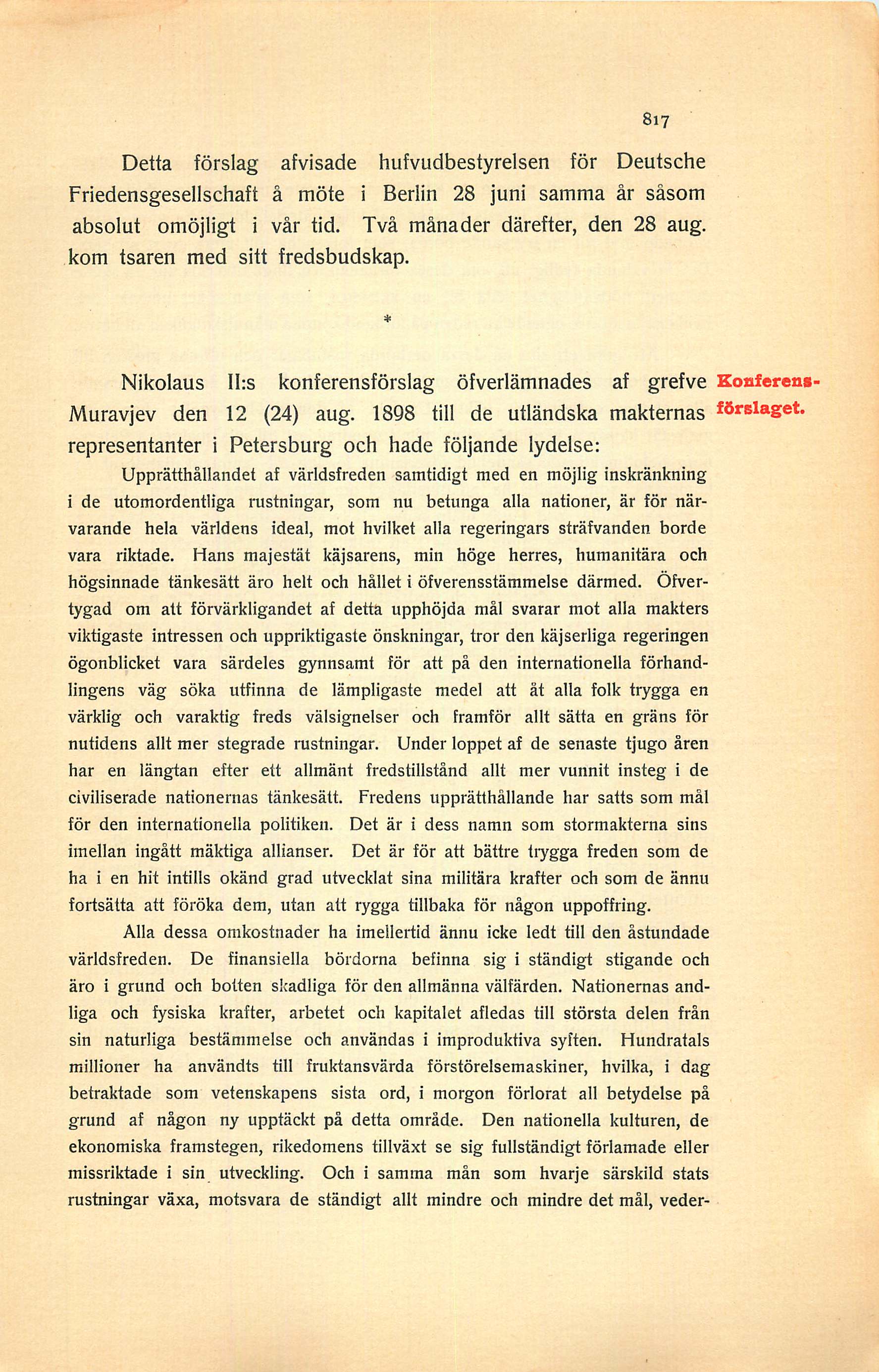 Nikolaus II:s konferensförslag öfverlämnades af grefve Konferens