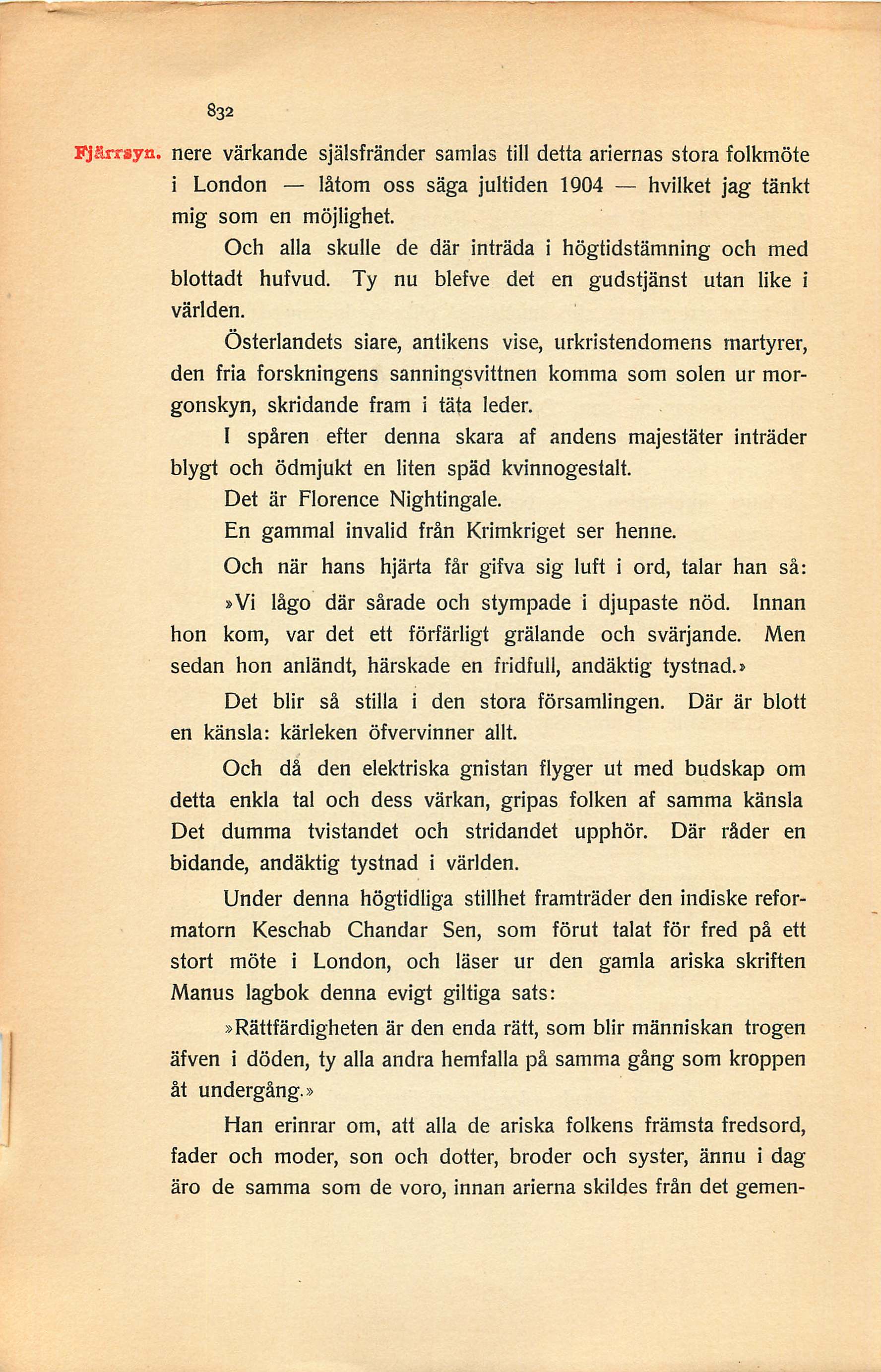 reformatorn Keschab Chandar Sen, som förut talat för fred på ett