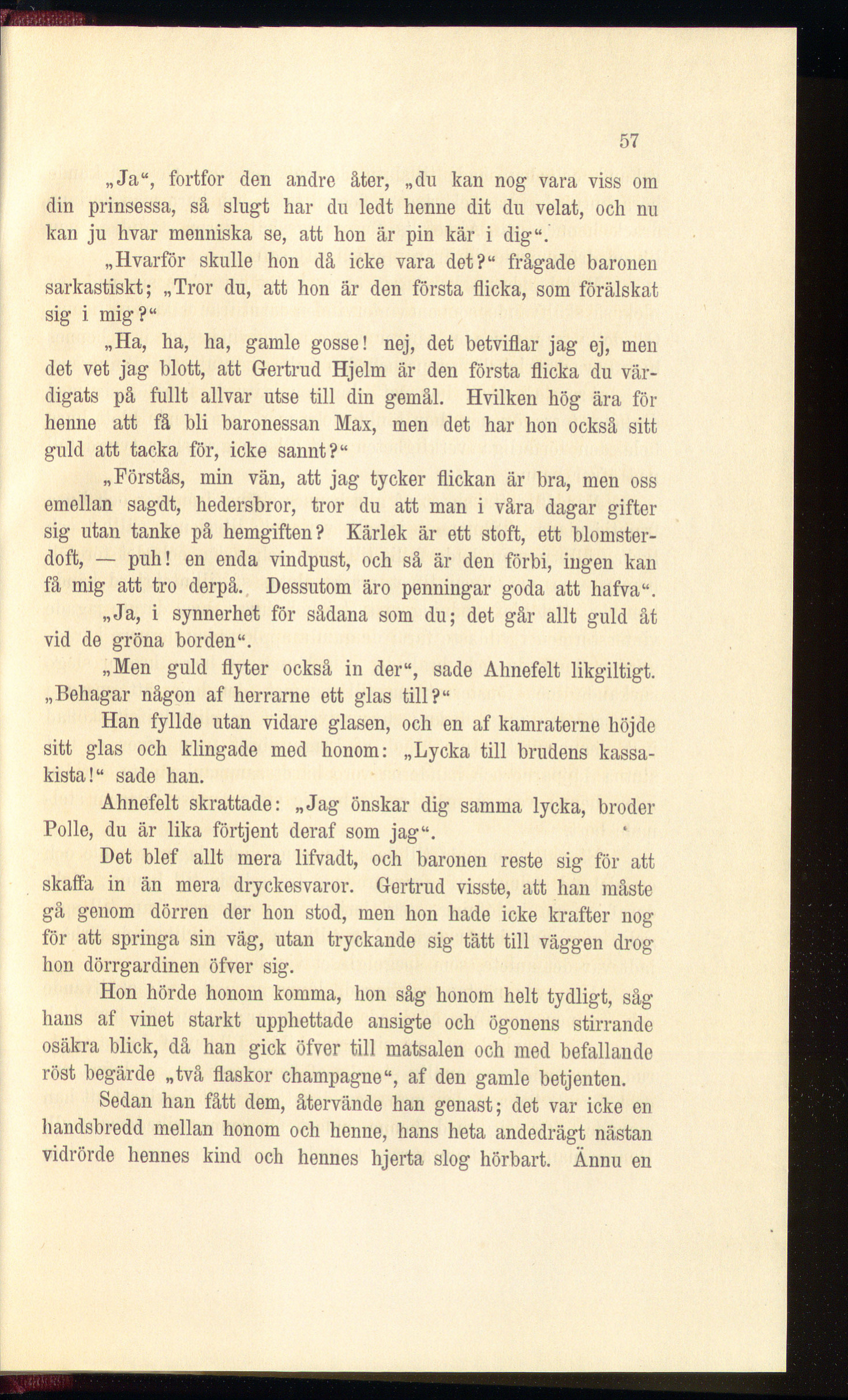 „Hvarför skulle hon då icke vara det?“ frågade baronen