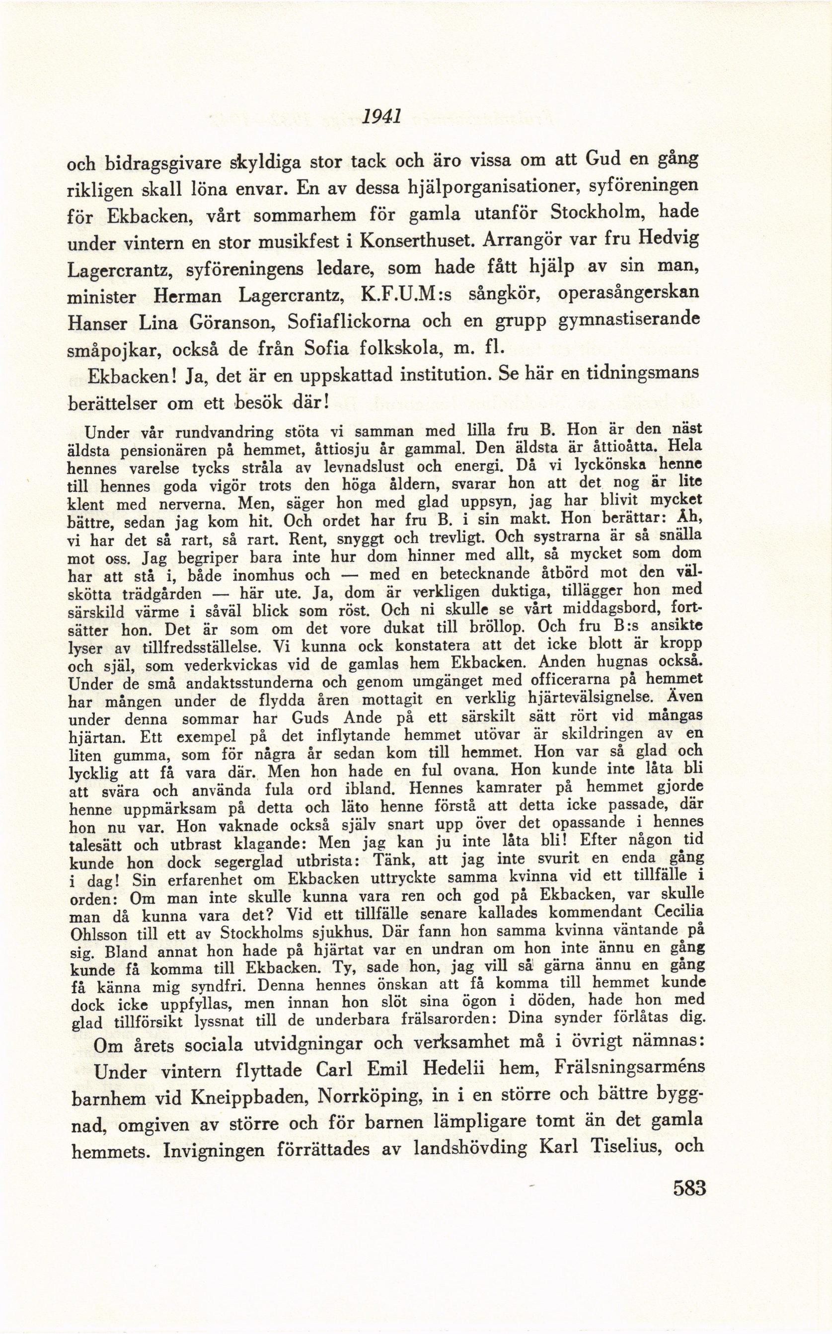 och själ, som vederkvickas vid de gamlas hem Ekbacken. Anden hugnas också.