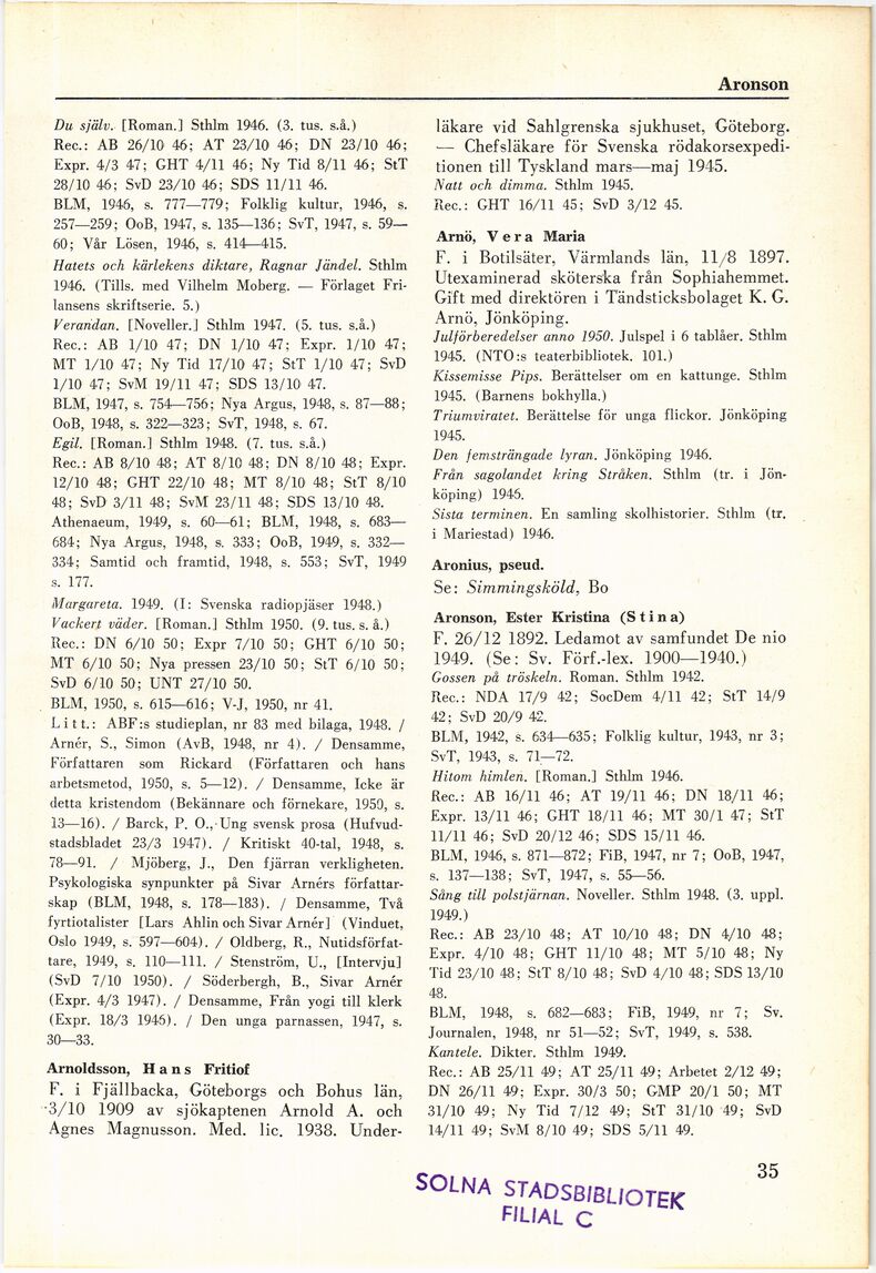 BLM, 1948, s. 682—683; FiB, 1949, nr 7; Sv.