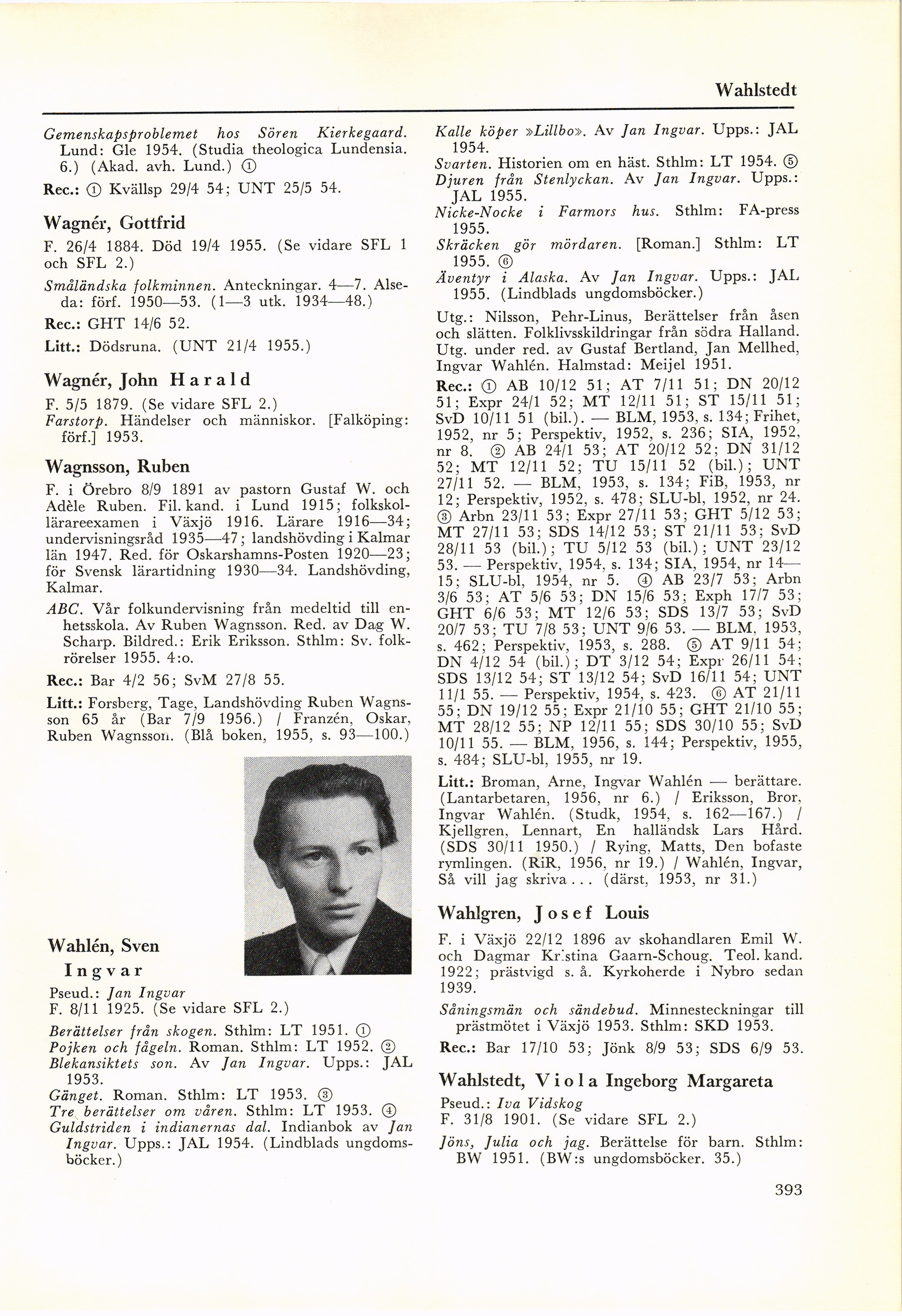Ingvar Wahlén. (Studk, 1954, s. 162—167.) /