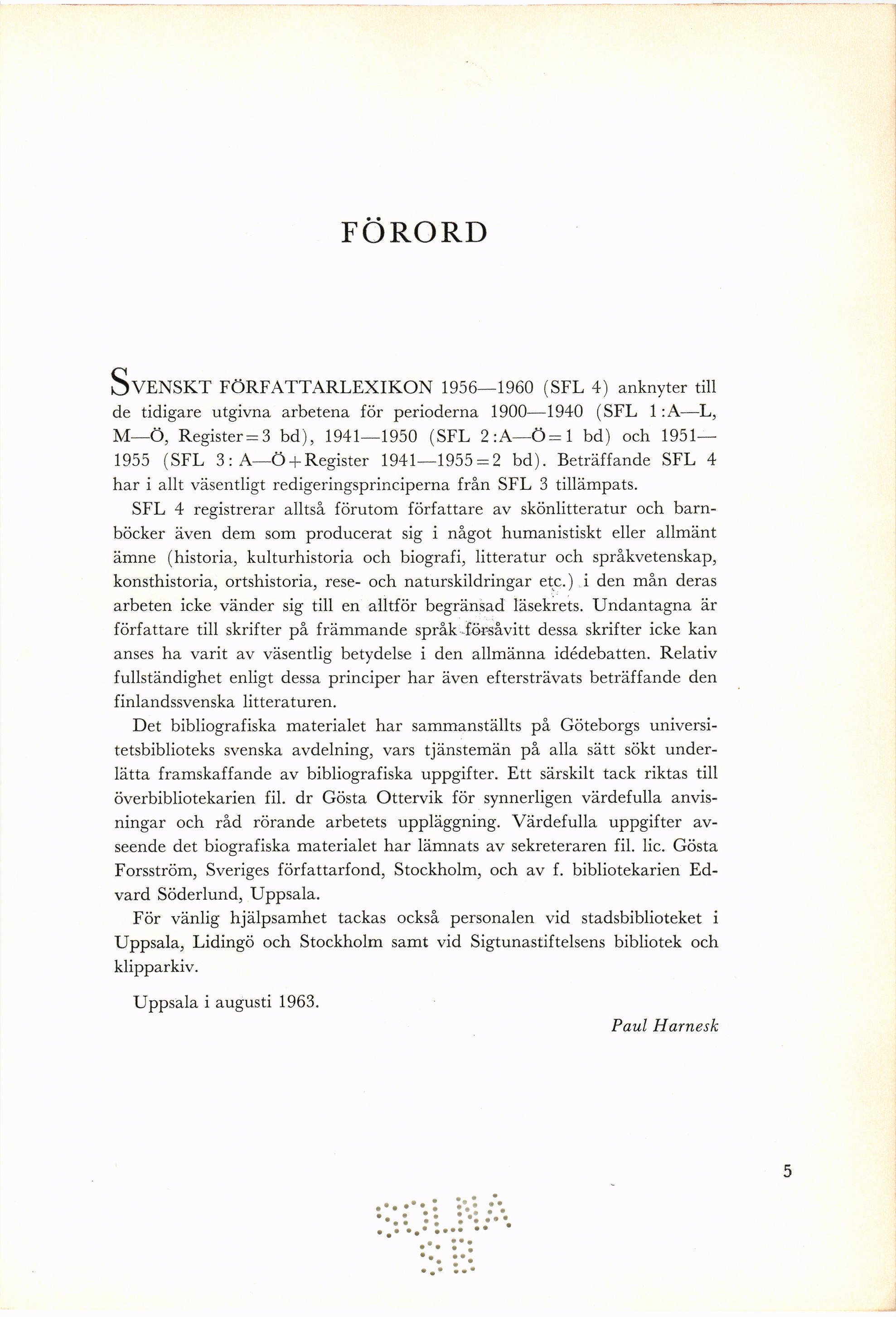Svenskt FÖRFATTARLEXIKON 1956—1960 (SFL 4) anknyter till