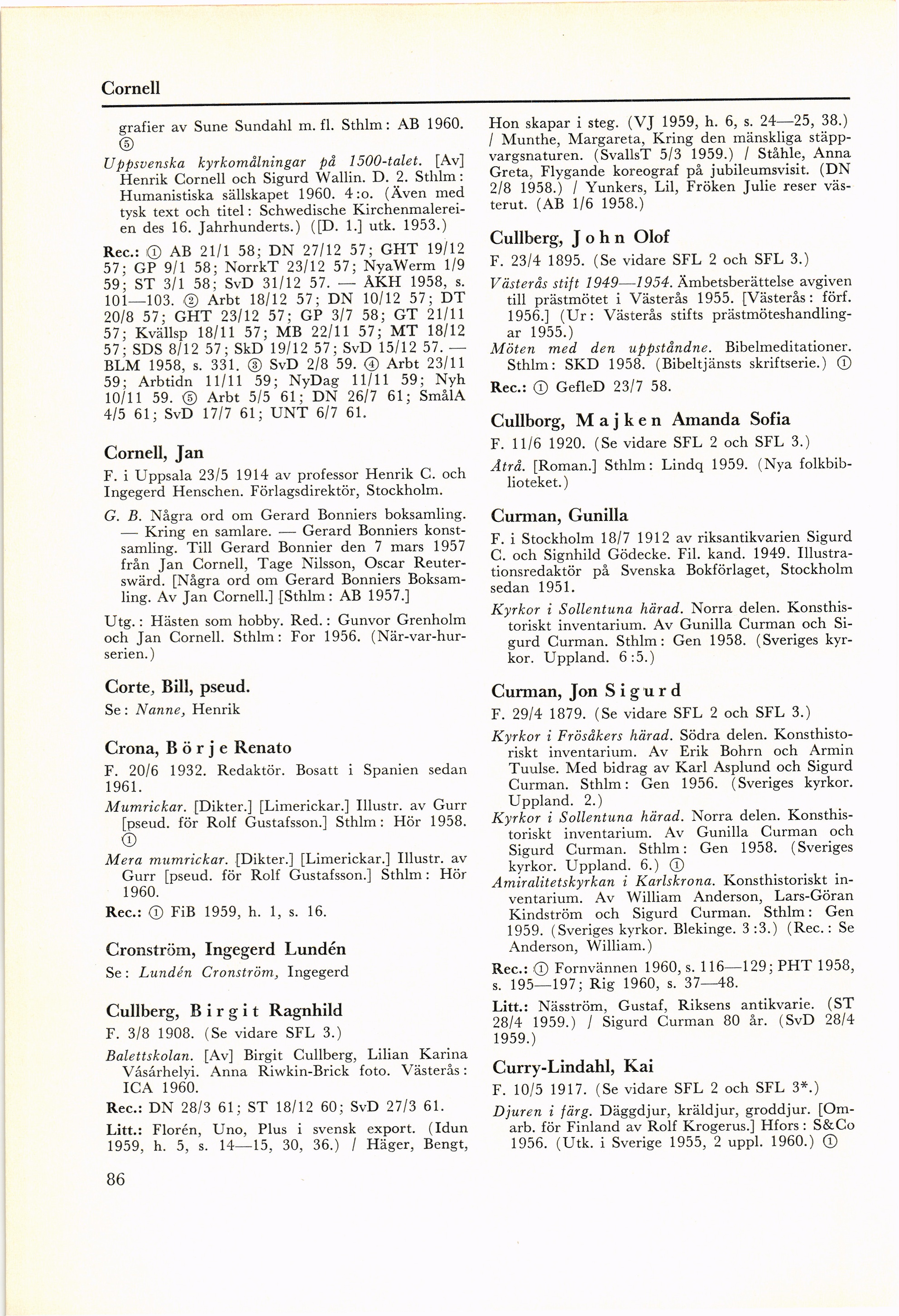 Sigurd Curman. Sthlm: Gen 1958. (Sveriges