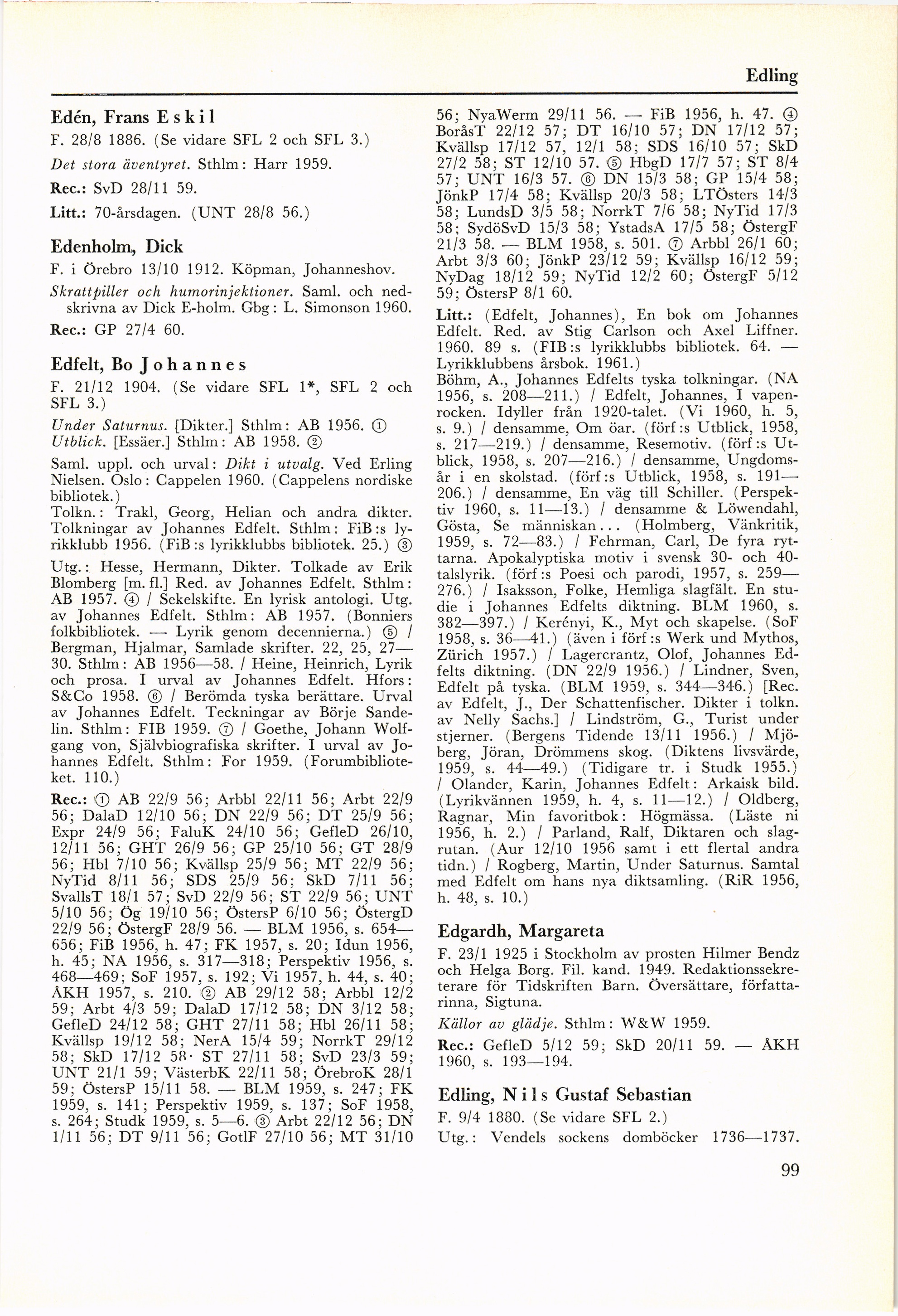 av Johannes Edfelt. Sthlm: AB 1957. (Bonniers
