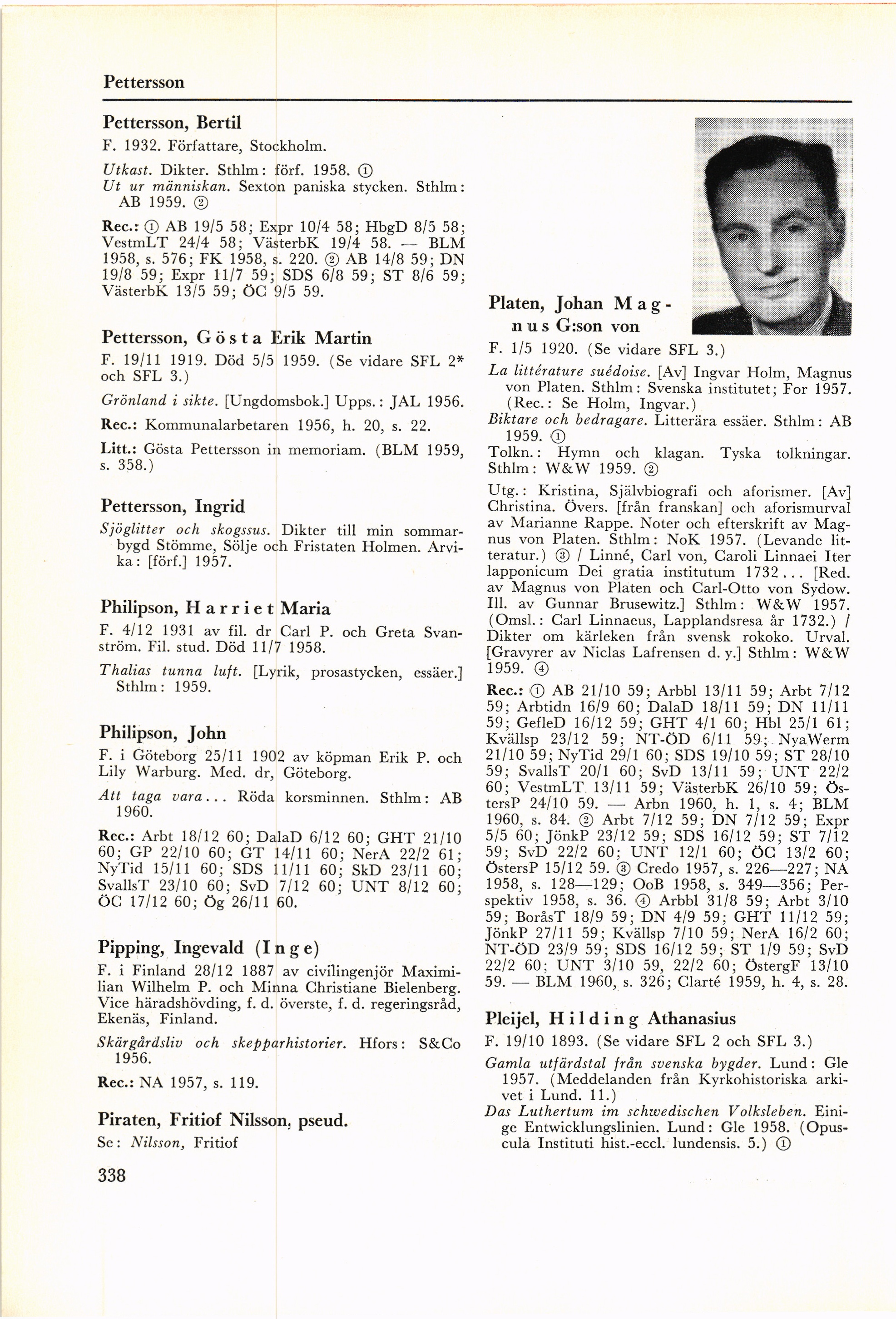Litt.: Gösta Pettersson in memoriam. (BLM 1959,